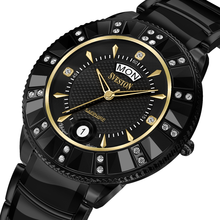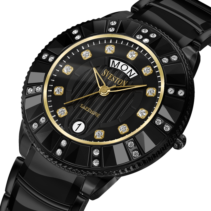 Experience luxury and grace with Sveston Glacera Women, a timepiece made with Japanese Quartz, crafted from durable stainless steel and premium ceramic. It features a 26mm case size with a 30mm lug-to-lug distance and 3ATM water resistance. Weighing just 95 grams, this watch blends lightweight comfort with timeless elegance