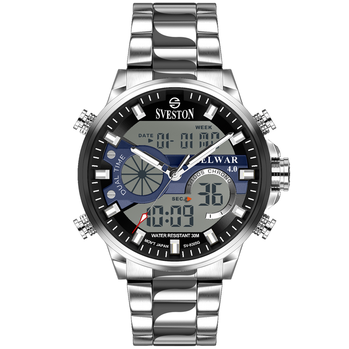 Sveston Diesel Silver Blue Is a Gents Stainless Steel Watch Having 41mm Dial and Comes with Stainless Steel Watch Case With Dual Time.