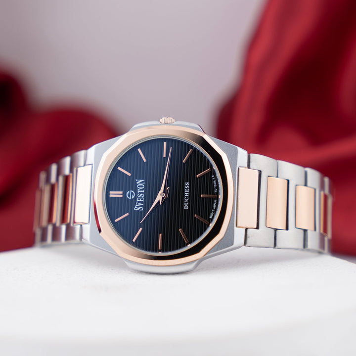 Experience luxury and precision with Sveston Duchess a women’s watch made with Japanese Quartz. Crafted from durable stainless steel, it boasts a 31mm case size with a 33mm lug-to-lug distance and 3ATM water resistance. Weighing 76 grams, this watch offers both style and substance