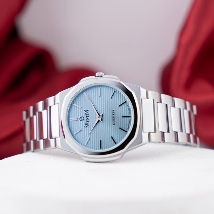 Sveston Duchess a sleek stainless steel ladies’ watch featuring a 31mm dial, elegantly packed in a luxury watch case.