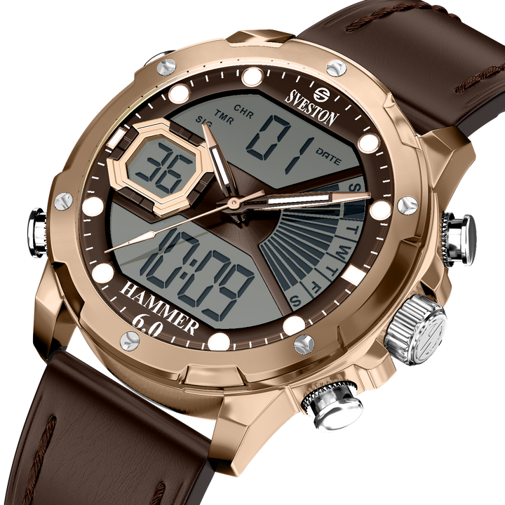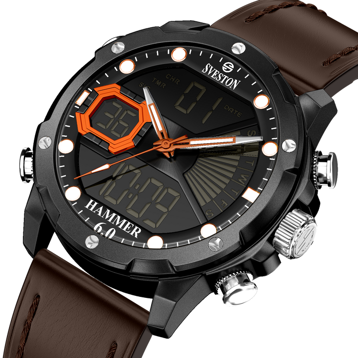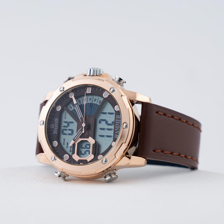 Sveston Hammer 1.0 is a gents’ leather timepiece featuring a 40mm dial designed for men who value strength, precision, and a bold sense of style.