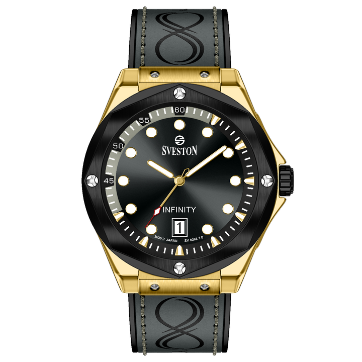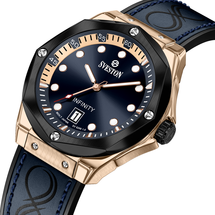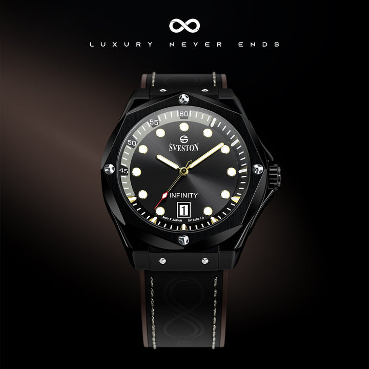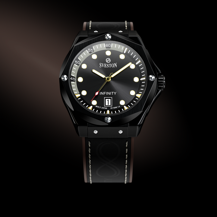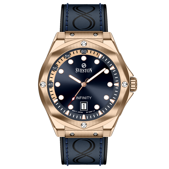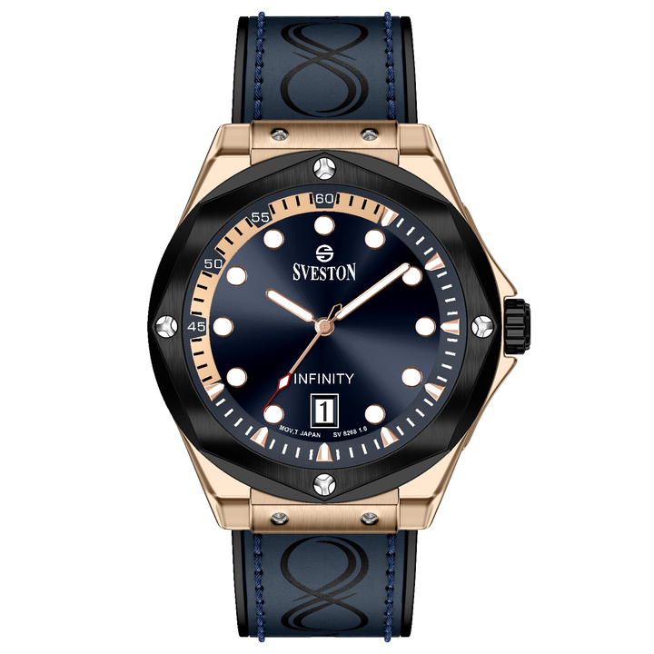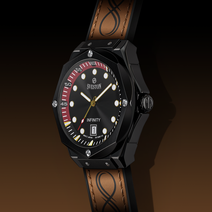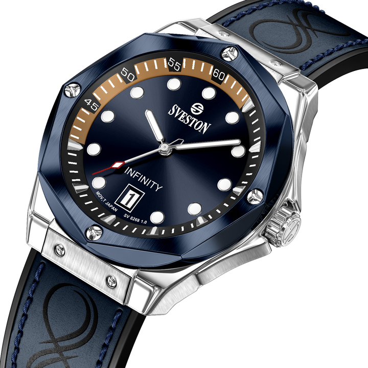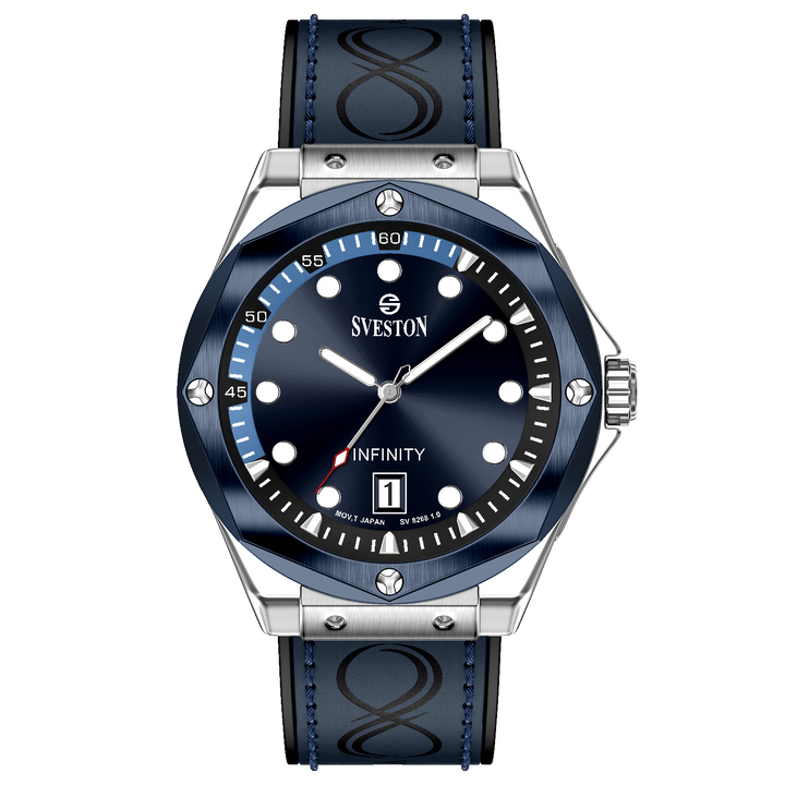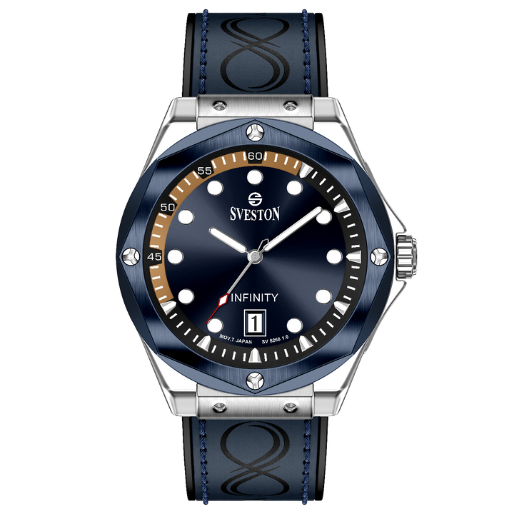 The Sveston Infinity is a men’s sports watch with a rubber strap and bold 39mm dial, housed in a luxury case blending style, comfort, and practicality.