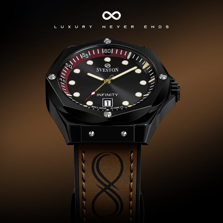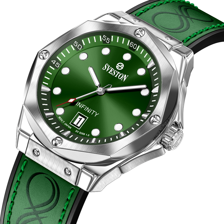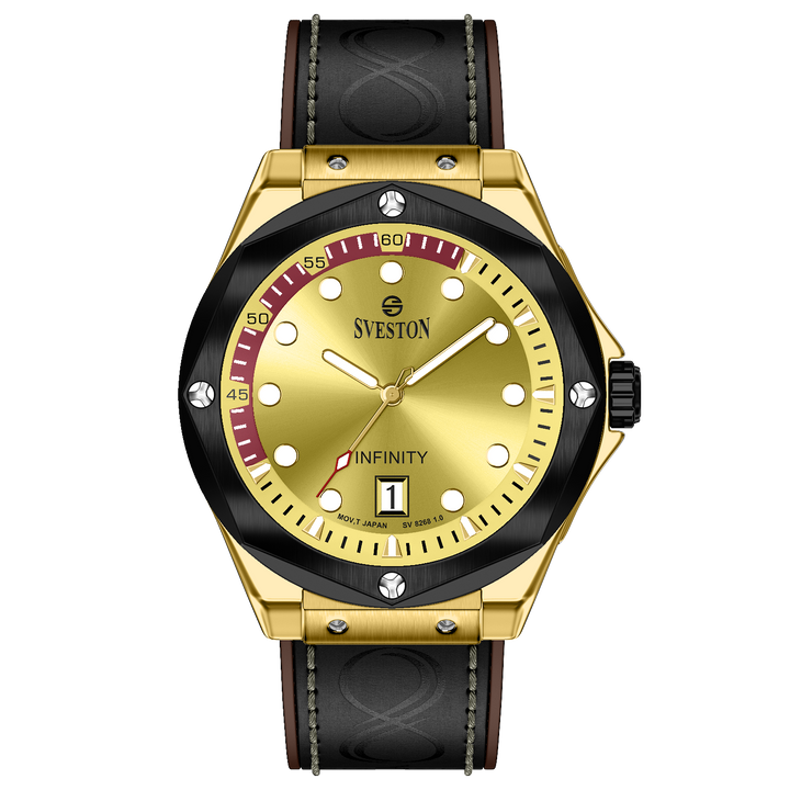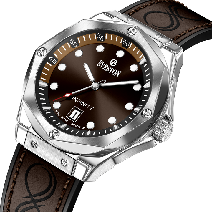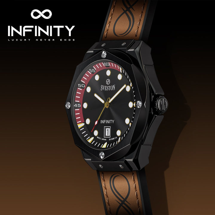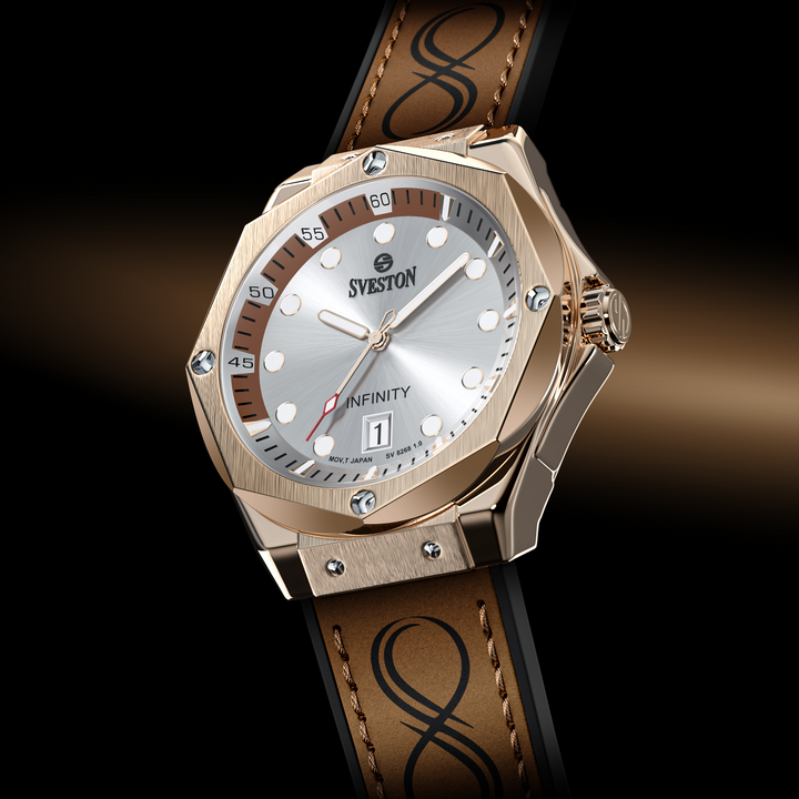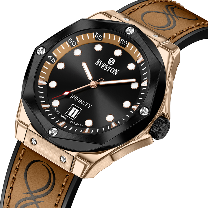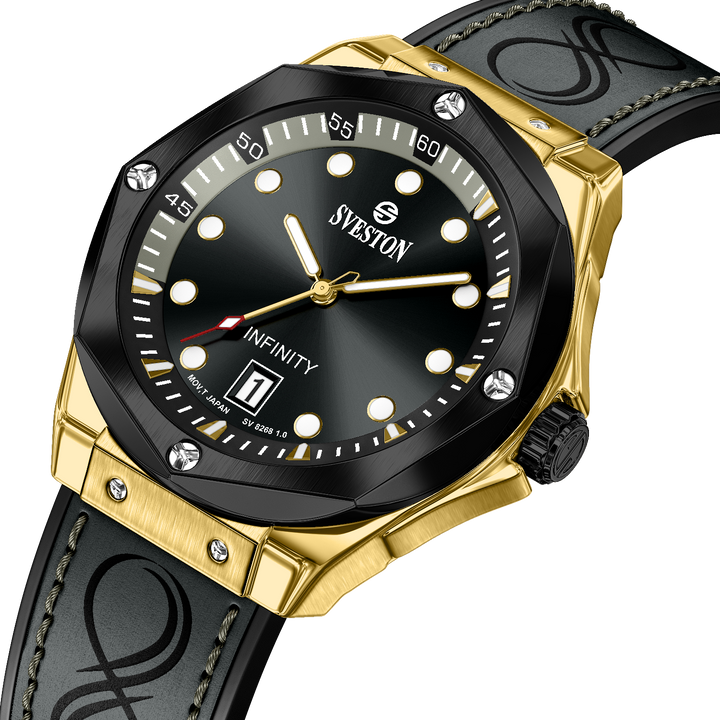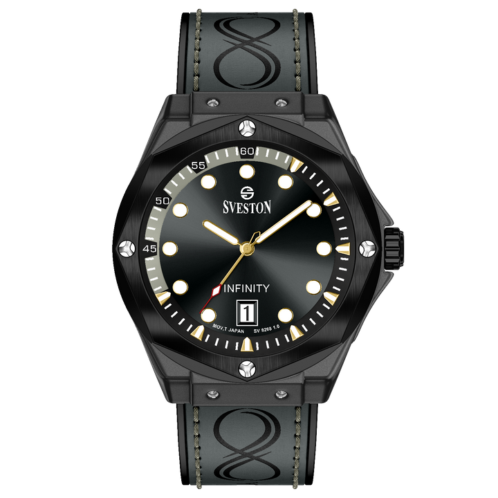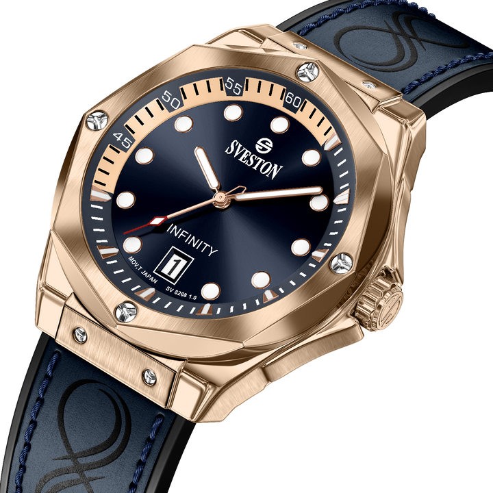 The Sveston Infinity is a men’s sports watch with a rubber strap and bold 39mm dial, housed in a luxury case blending style, comfort, and practicality.