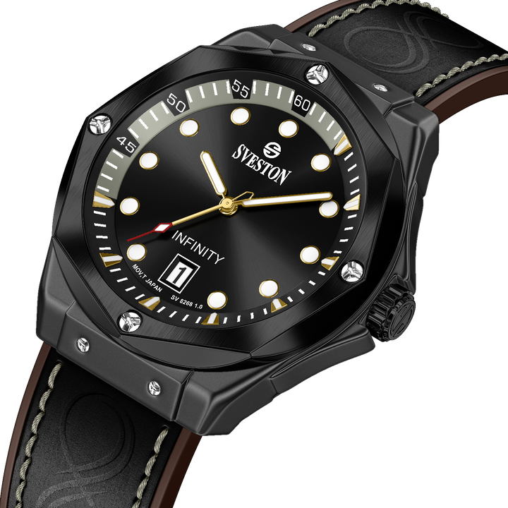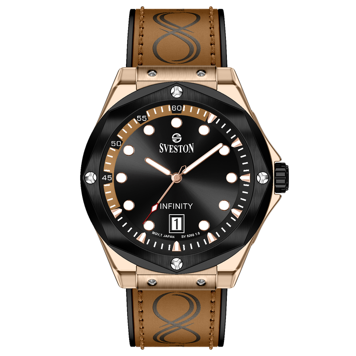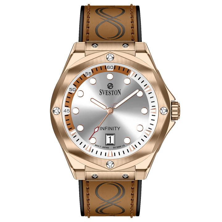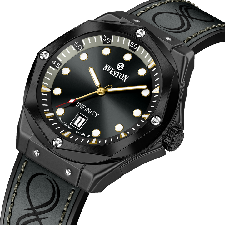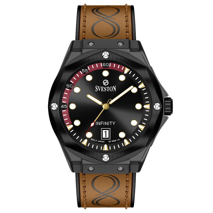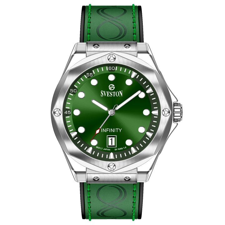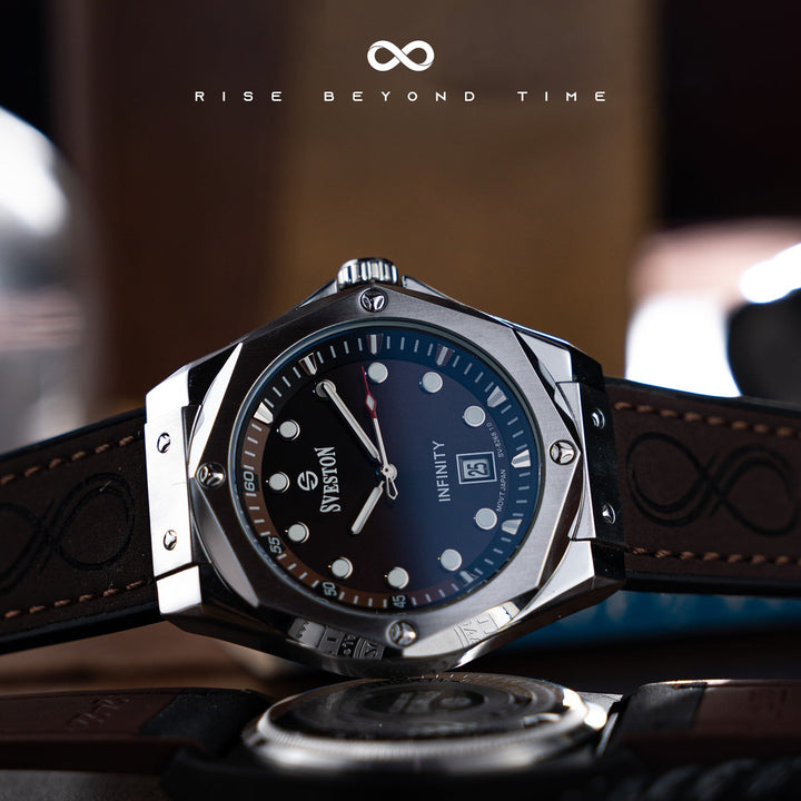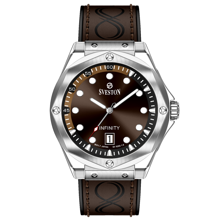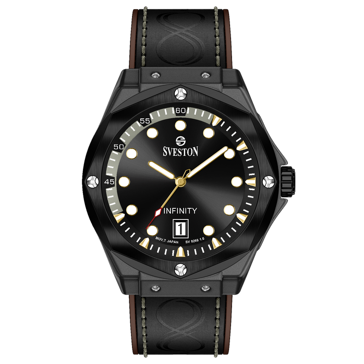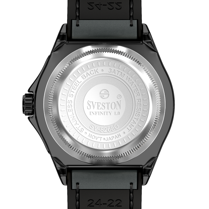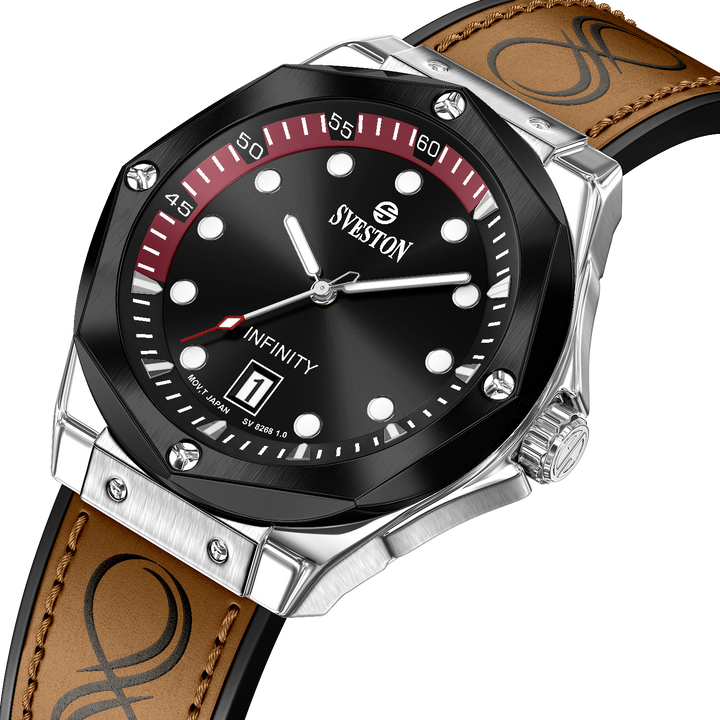 The Sveston Infinity is a men’s sports watch with a rubber strap and bold 39mm dial, housed in a luxury case blending style, comfort, and practicality.