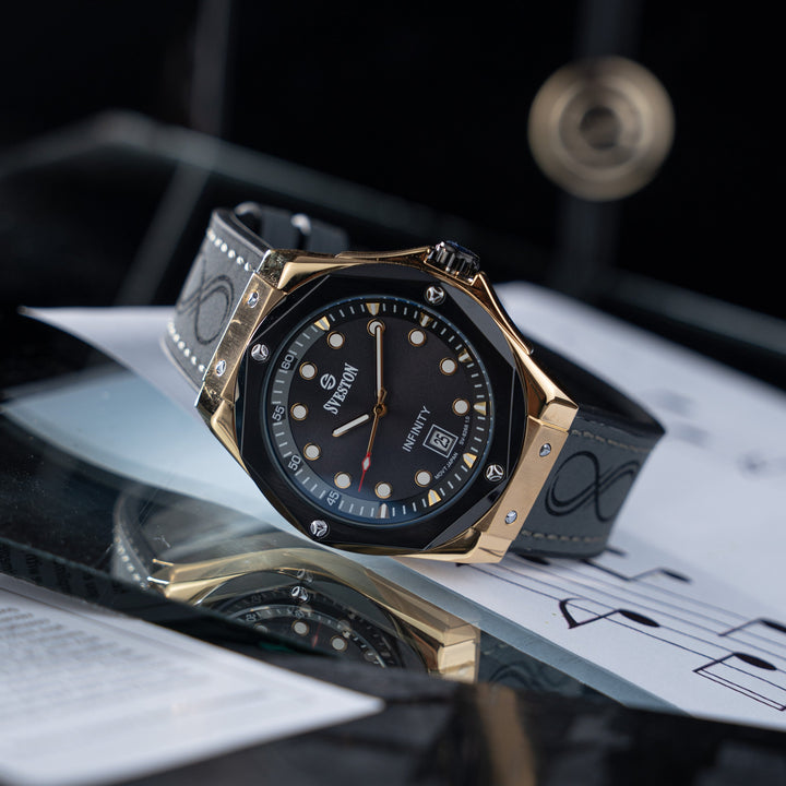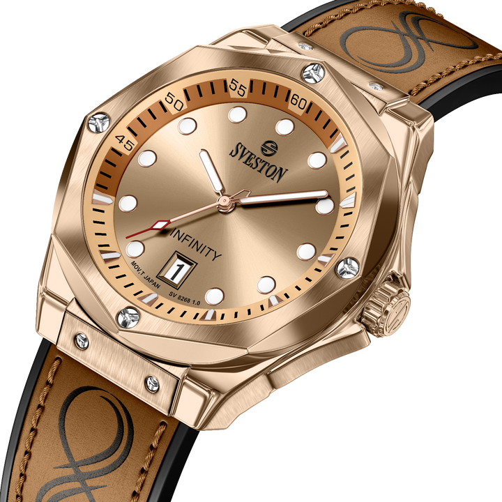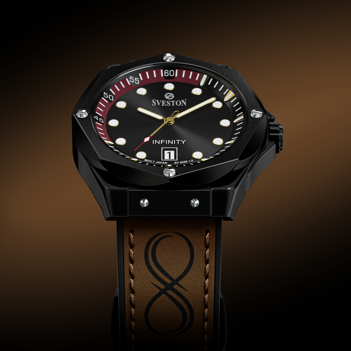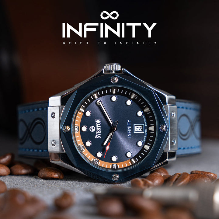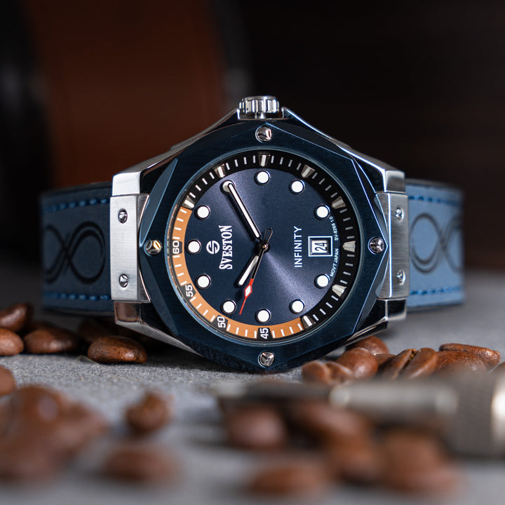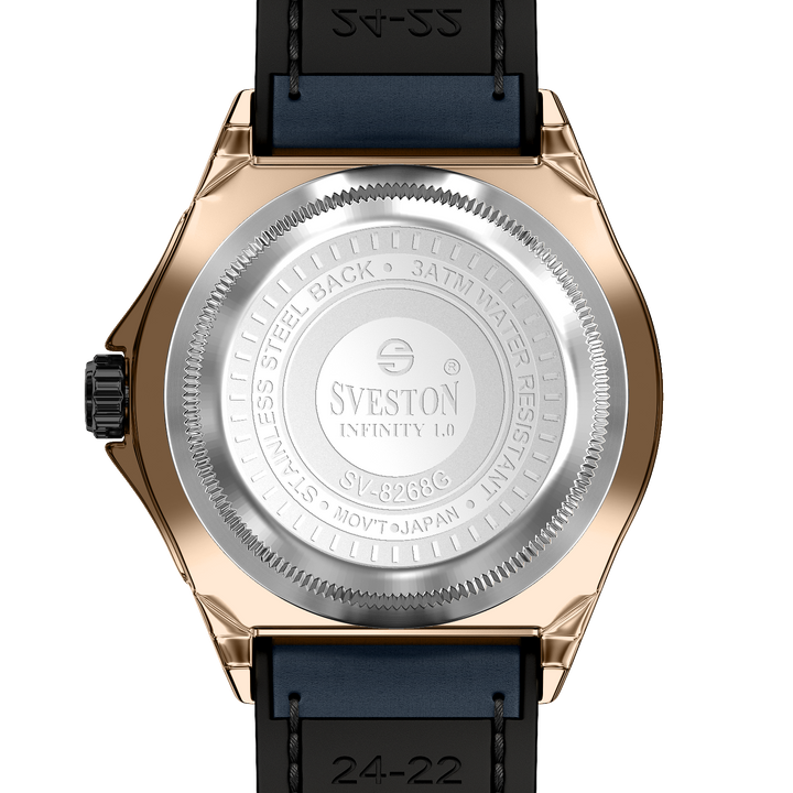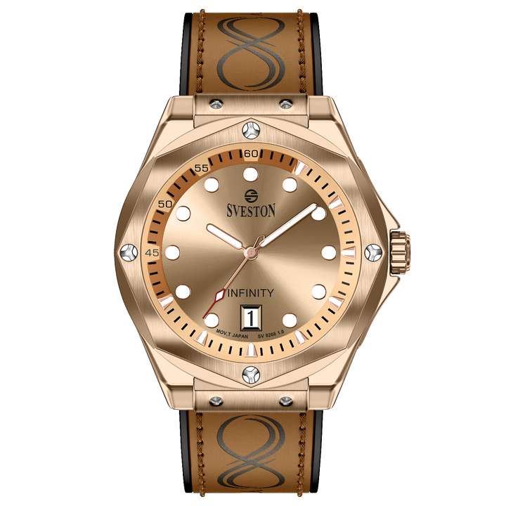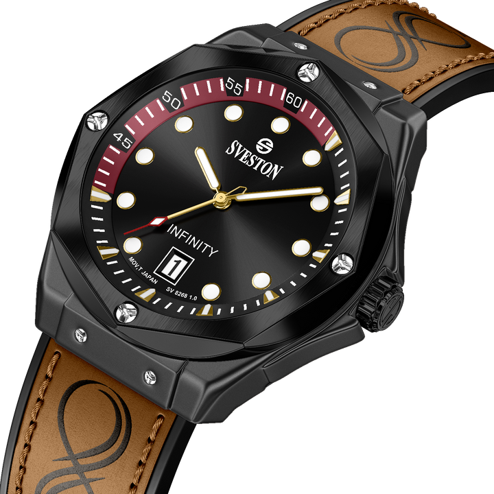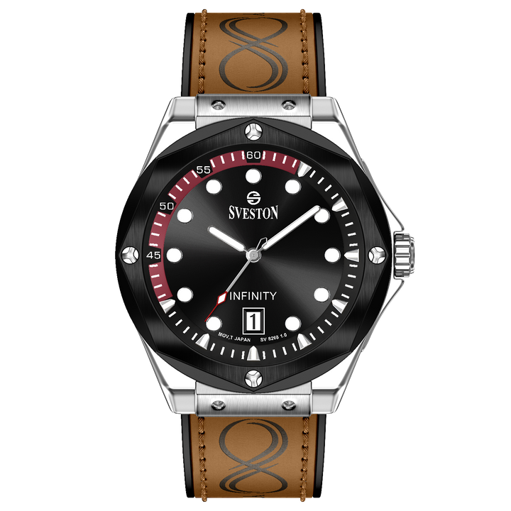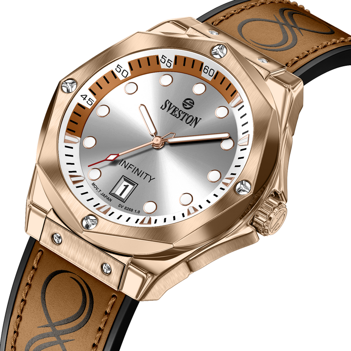 The Sveston Infinity is a men’s sports watch with a rubber strap and bold 39mm dial, housed in a luxury case blending style, comfort, and practicality.