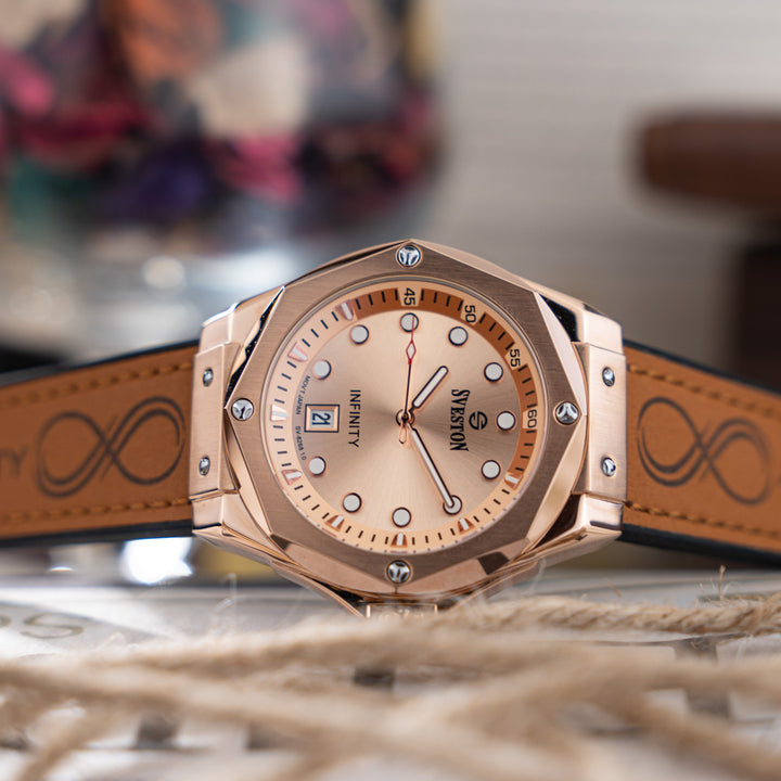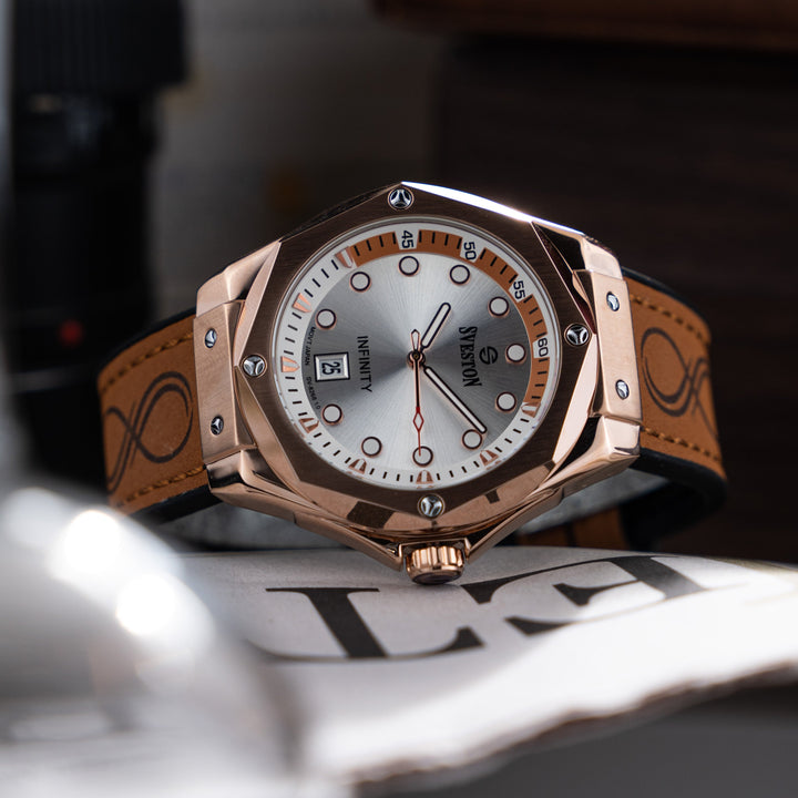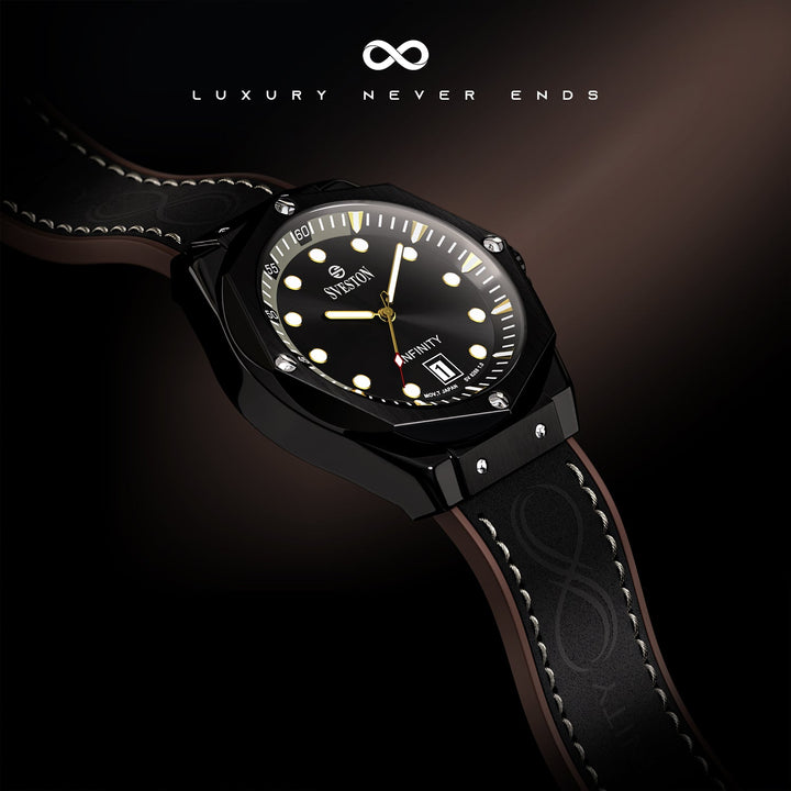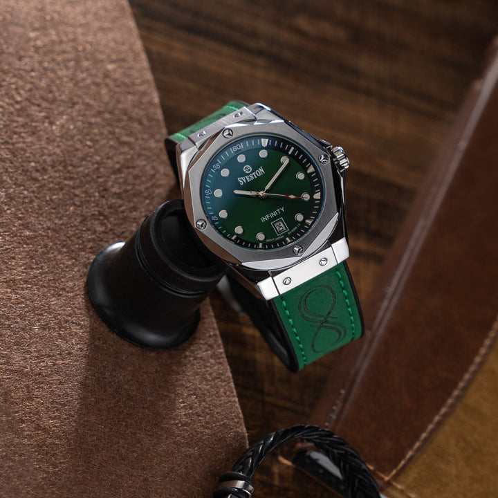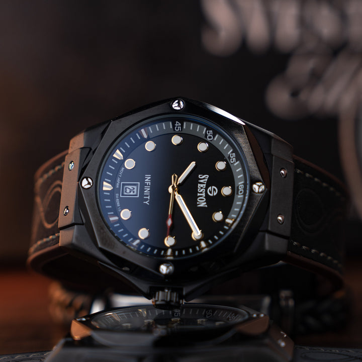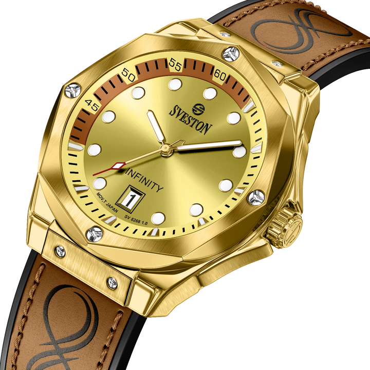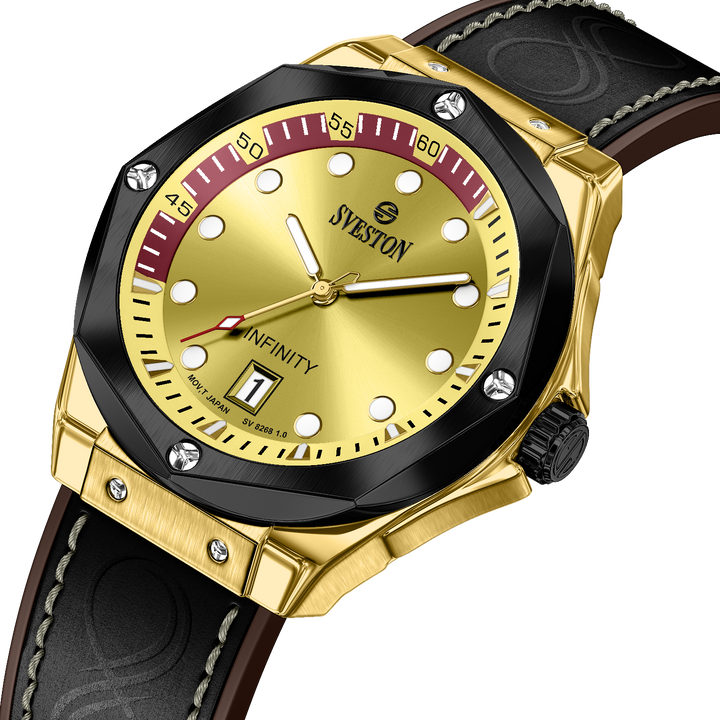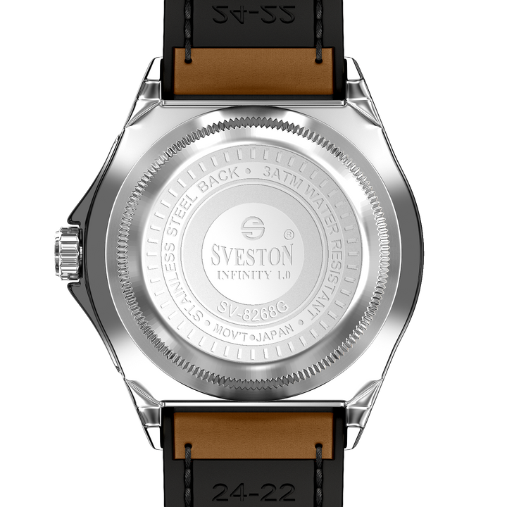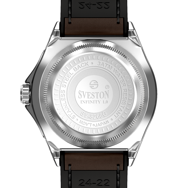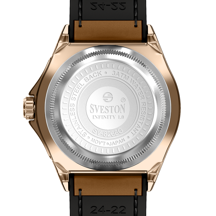 The Sveston Infinity is a men’s sports watch with a rubber strap and bold 39mm dial, housed in a luxury case blending style, comfort, and practicality.