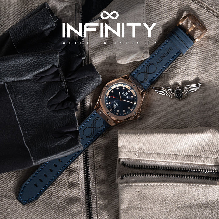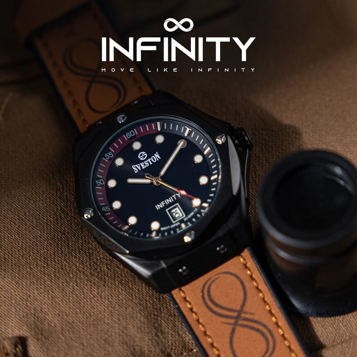 ntroducing the Infinity sports watch for men, a perfect mix of performance, durability, and style. It is powered by reliable Japanese Quartz movement. The watch has a bold 39mm case, a 48mm lug-to-lug distance, and weighs just 91 grams, giving it a slim profile without losing its presence. Its comfortable fit, combined with 3ATM water resistance and a premium sports Rubber strap, makes it perfect for everyday wear. Whether you are at the office, on the move, or making a statement at a special event, the Infinity watch suits any occasion. With Infinity, you can enjoy precision, confidence, and timeless appeal all in one striking timepiece.