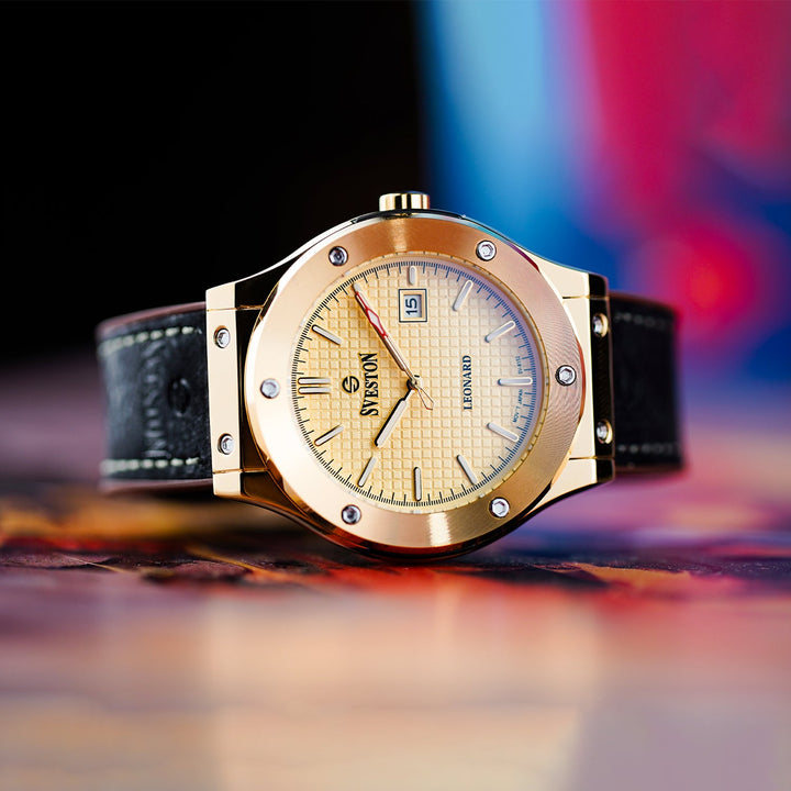 The Sveston Leonard 1.0 men's leather watch features a 40mm dial complete with a luxury watch case for a premium and sophisticated touch
