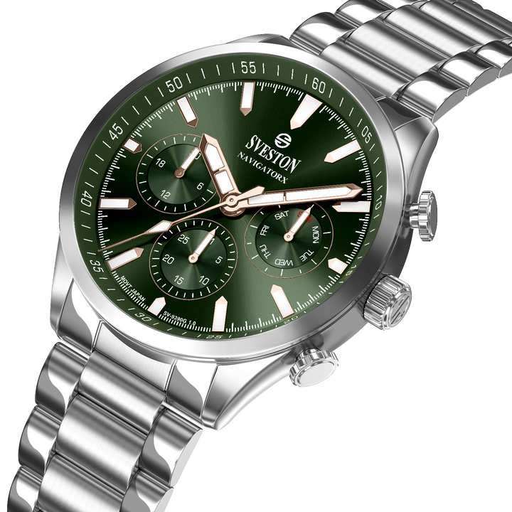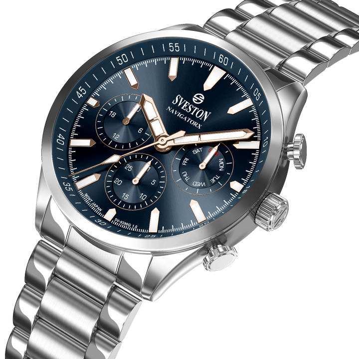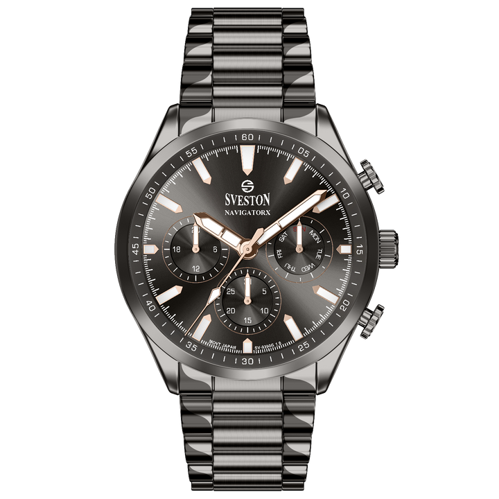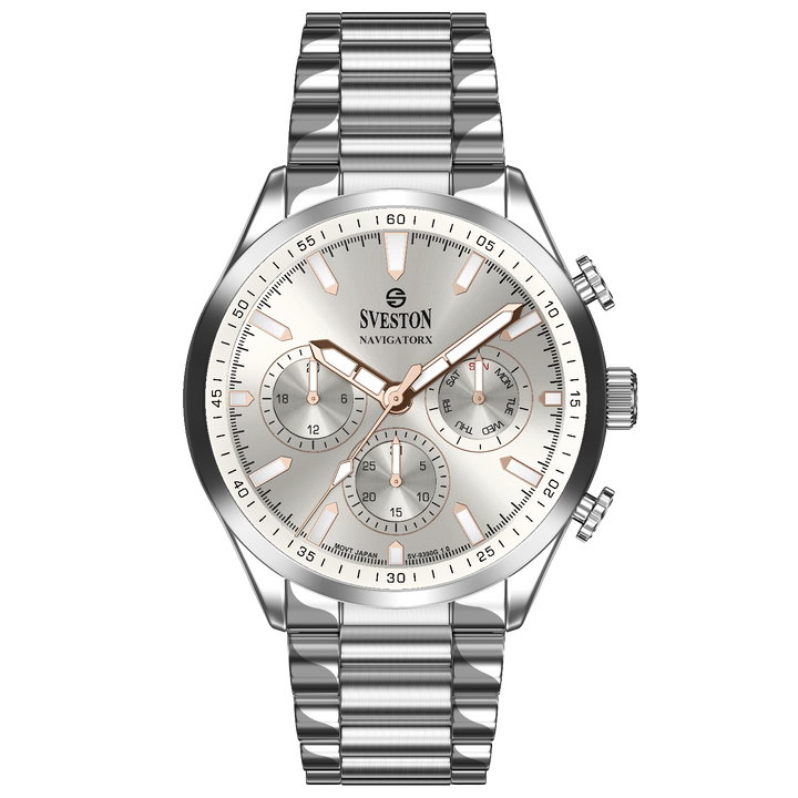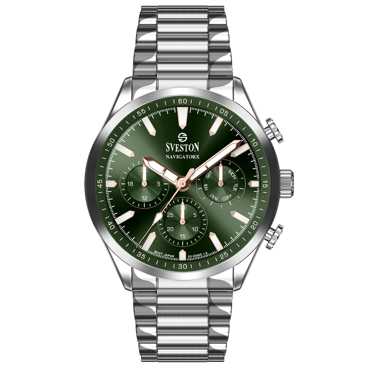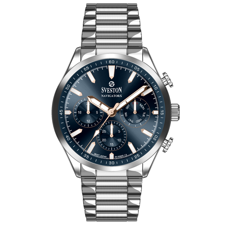 Discover elegance in motion with the Navigatorx, a men’s sports steel watch powered by Japanese Quartz movement. Its 38mm case and 46mm lug-to-lug distance provide a balanced and confident fit. The watch offers 3ATM water resistance and a lightweight 120g profile, making it ideal for both casual days and formal events.