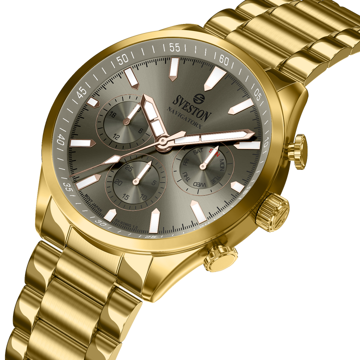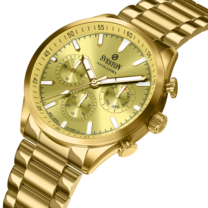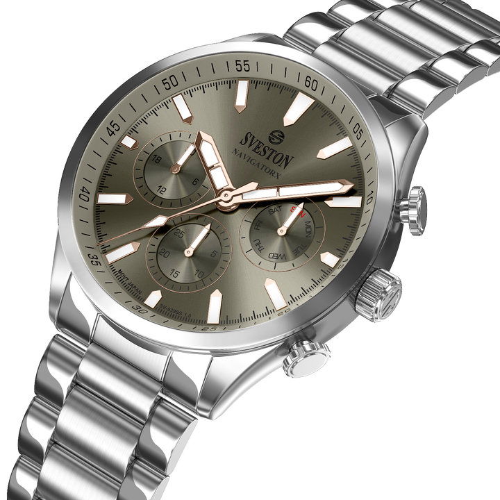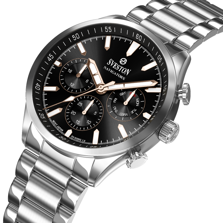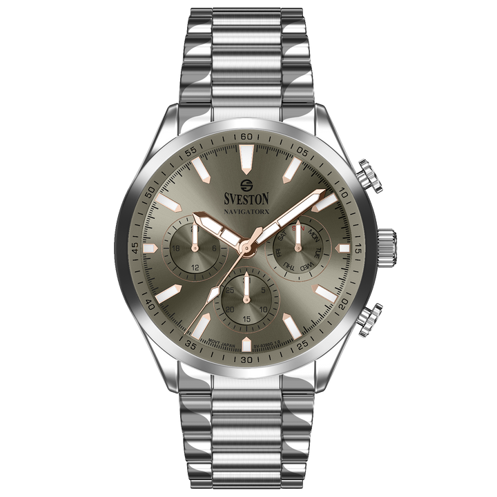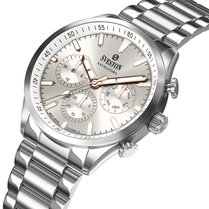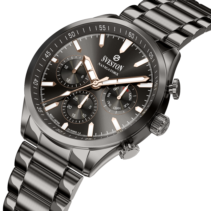 Discover elegance in motion with the Navigatorx, a men’s sports steel watch powered by Japanese Quartz movement. Its 38mm case and 46mm lug-to-lug distance provide a balanced and confident fit. The watch offers 3ATM water resistance and a lightweight 120g profile, making it ideal for both casual days and formal events.