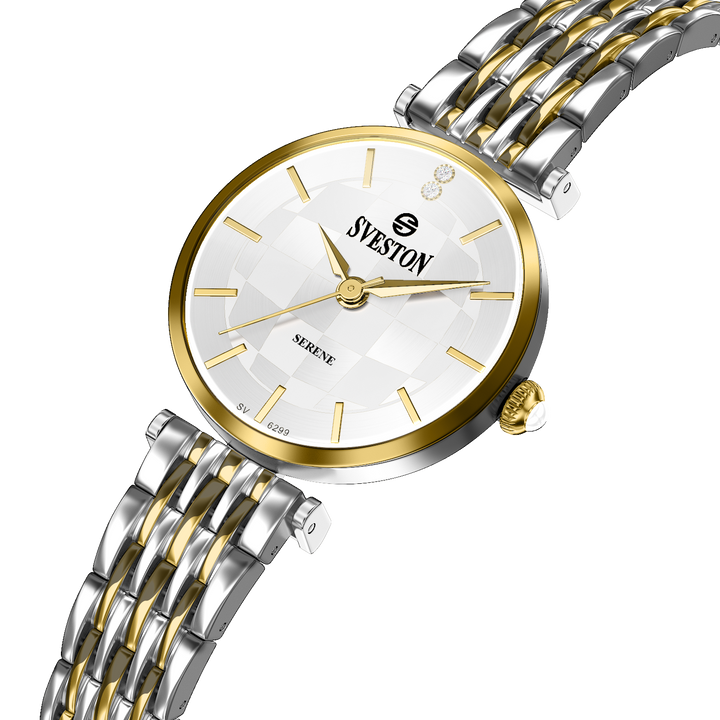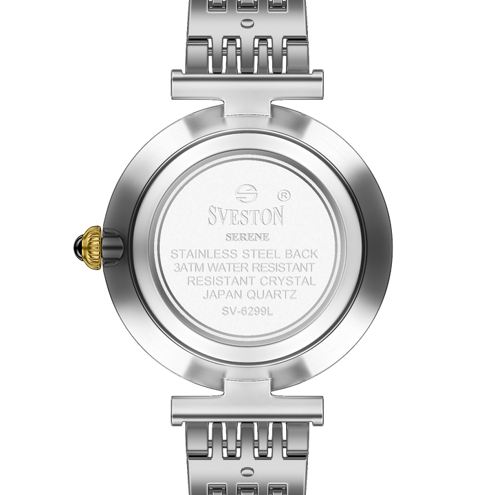 Sveston Serene is a feminine bracelet watch featuring a 22mm dial, elegantly presented in a luxury watch case.