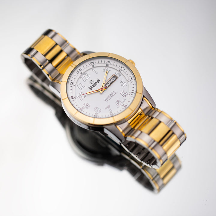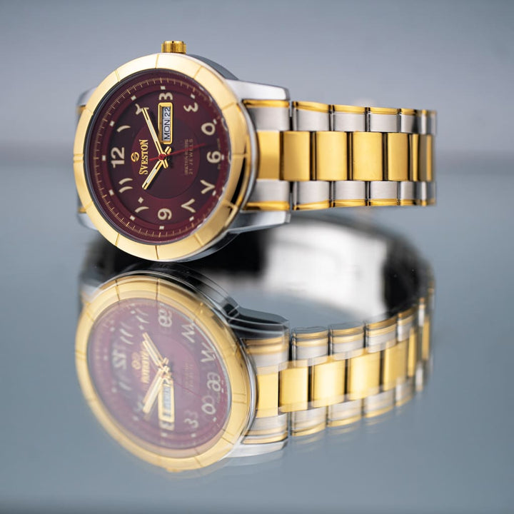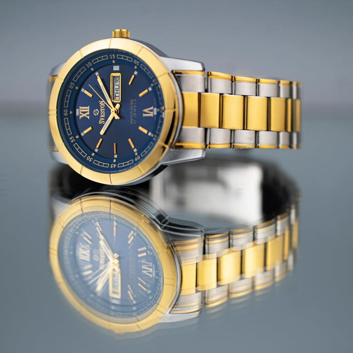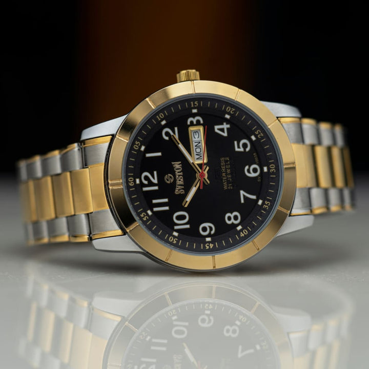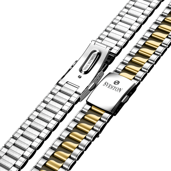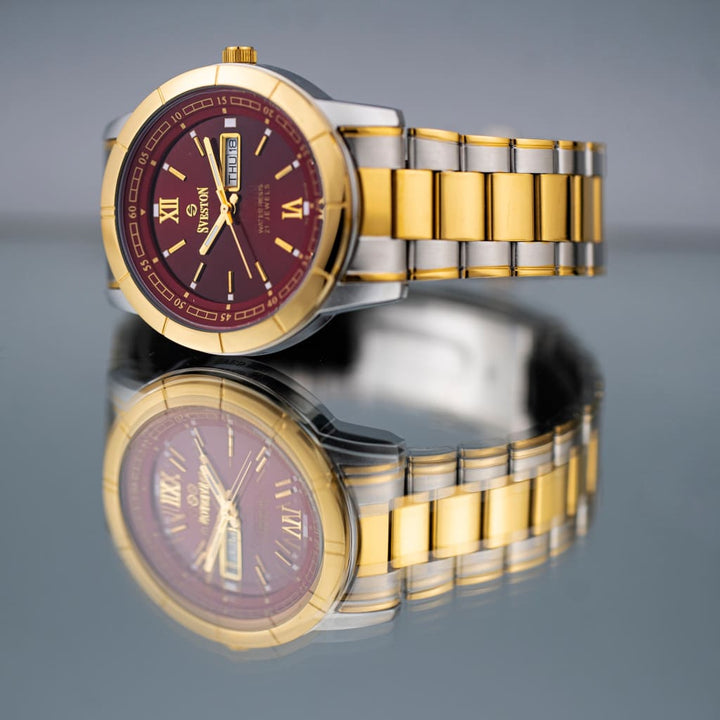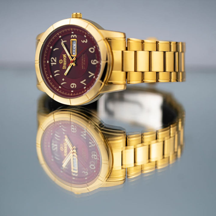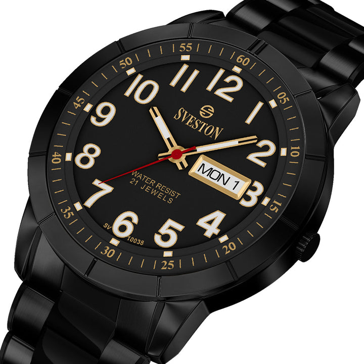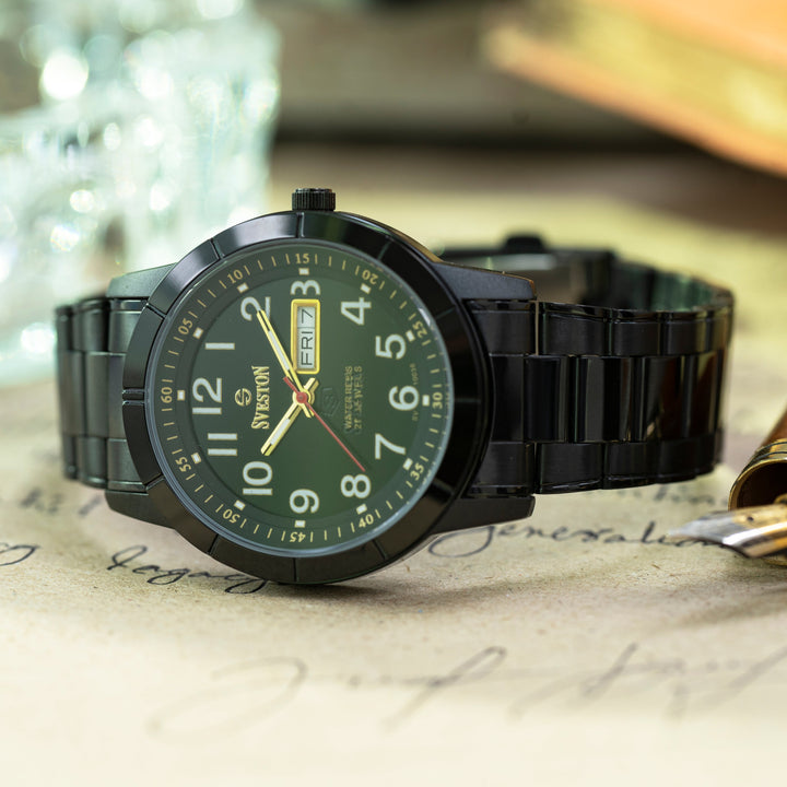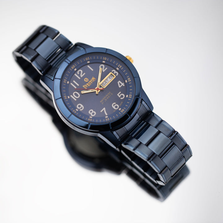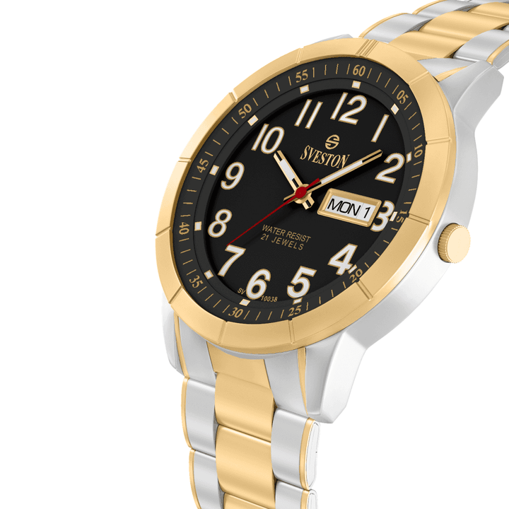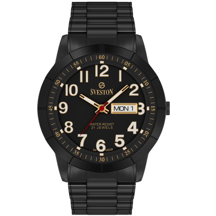 Sveston Ageless Merced is an elegant analog gents’ wristwatch powered by a precise Japanese quartz movement. It features a 38 mm stainless-steel round case with a push-button deployment clasp. The watch includes hour, minute, small-seconds, and date functions, all protected by a hardened mineral crystal. It comes in a signature Sveston box and is backed by a 1-year international warranty.