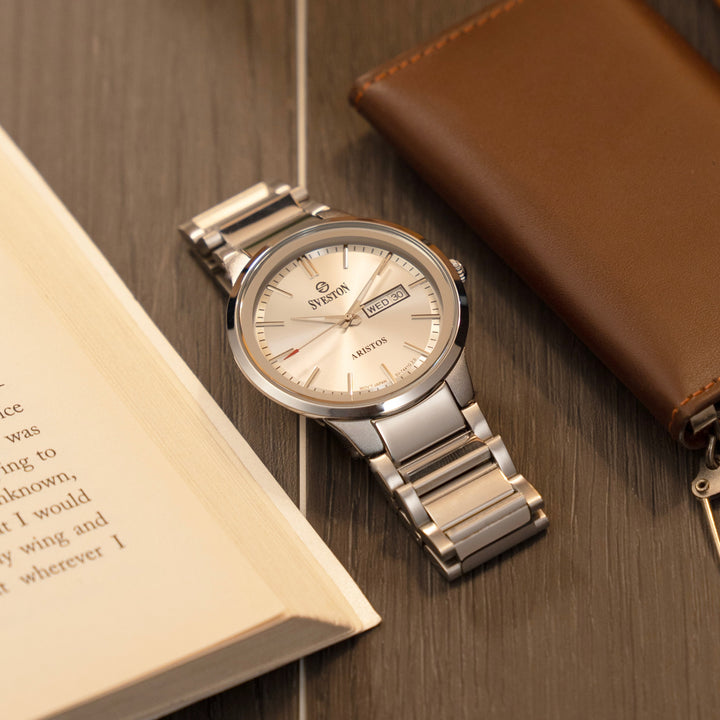 Discover the ultimate combination of style and function with the Aristos watch for men made with Japanese Quartz this stainless steel watch boasts a case size of 38mm and a lug-to-lug distance of 45mm while weighing only 113 gram With 3ATM water resistance it's the perfect watch for any occasion.