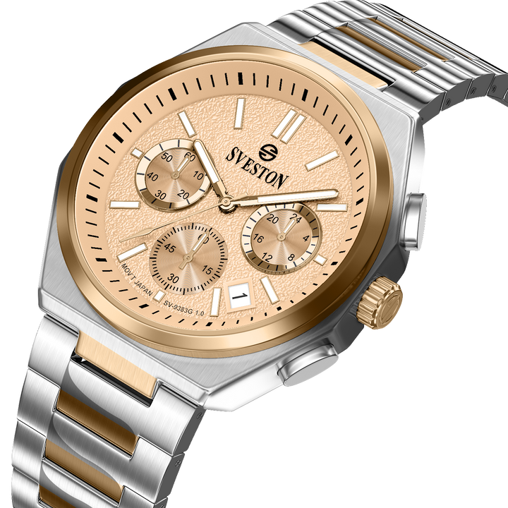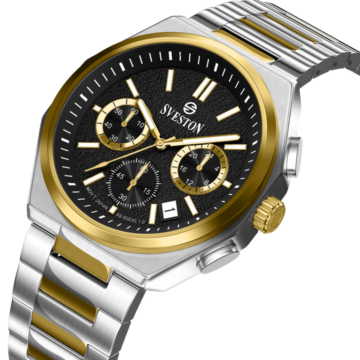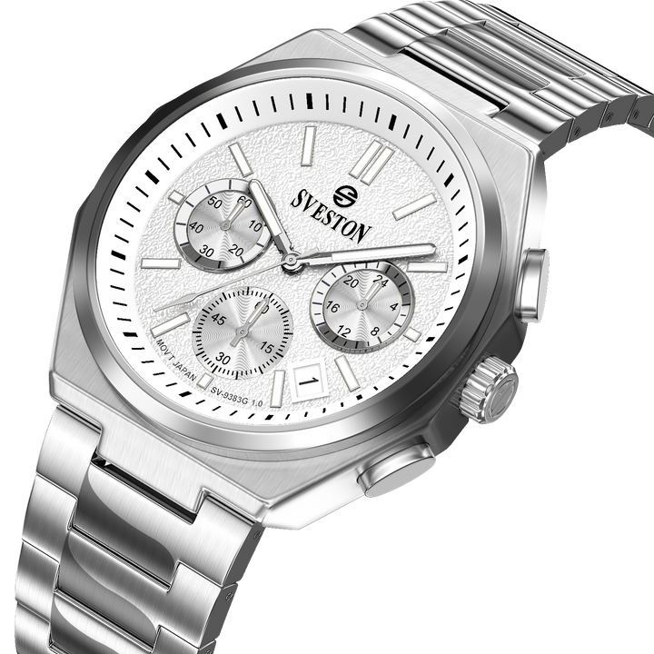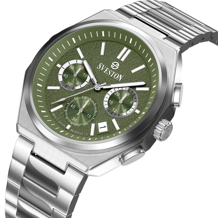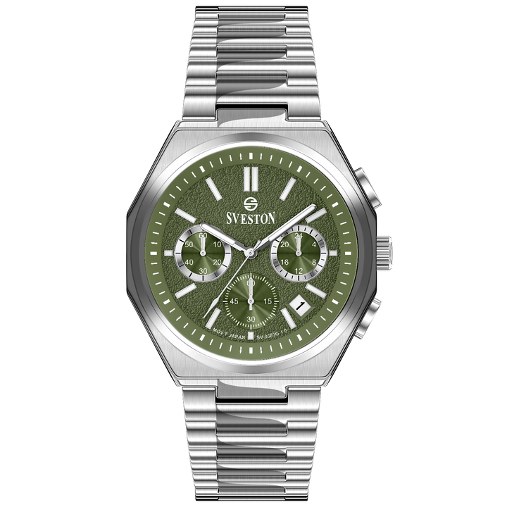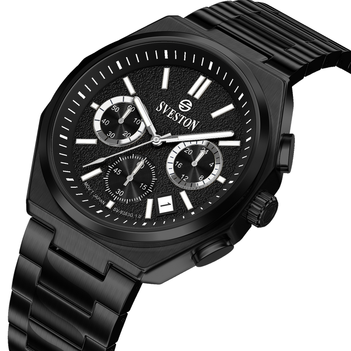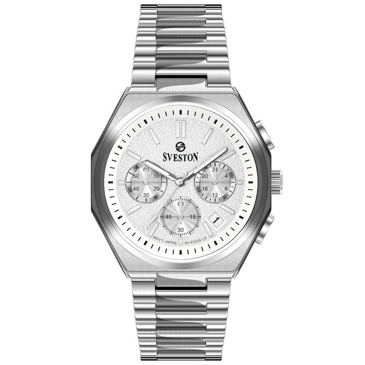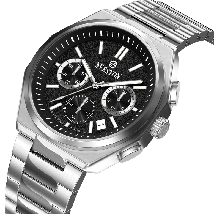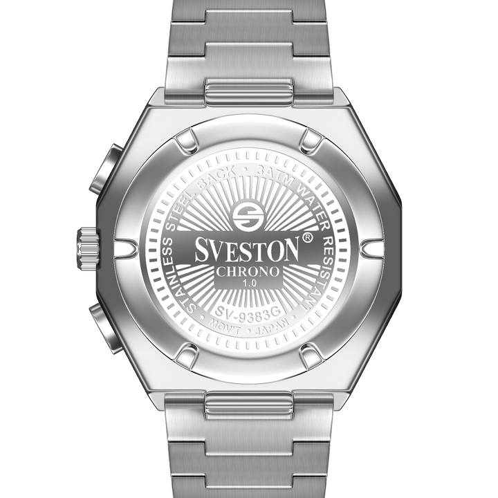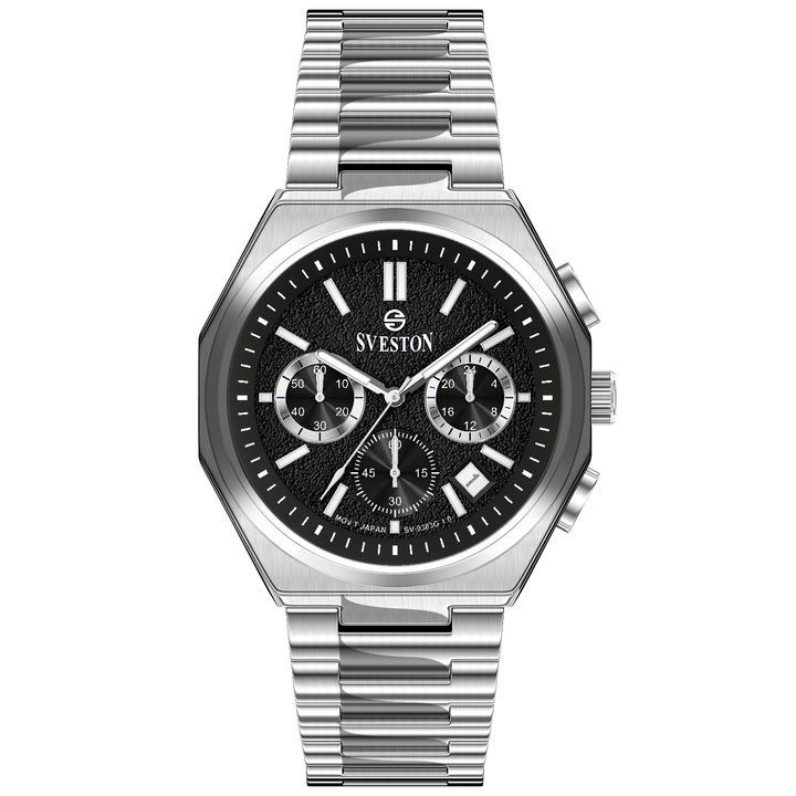 Sveston Chrono 1.0 a high-performance stainless steel sports chronograph watch for men featuring a 34mm dial and designed for those who seek both elegance and functionality