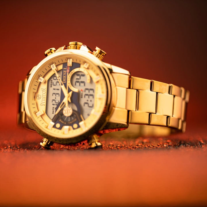 Sveston Diesel Is a Gents Stainless Steel Watch Having 40mm Dial and Comes with Stainless Steel Watch Case With Dual Time.