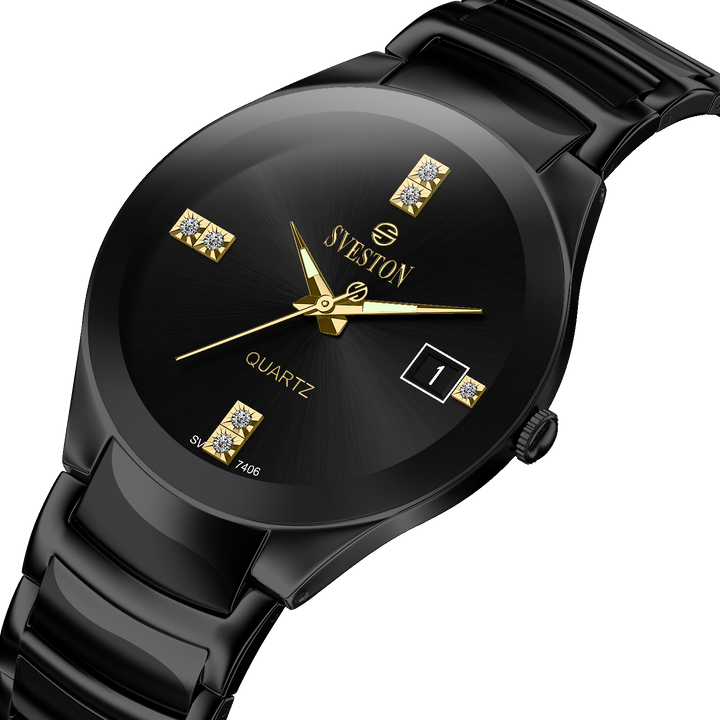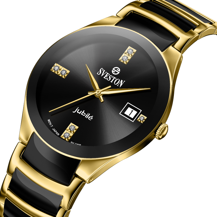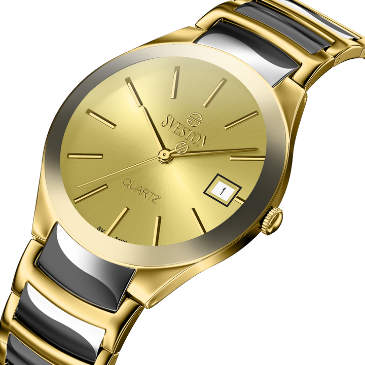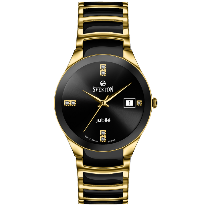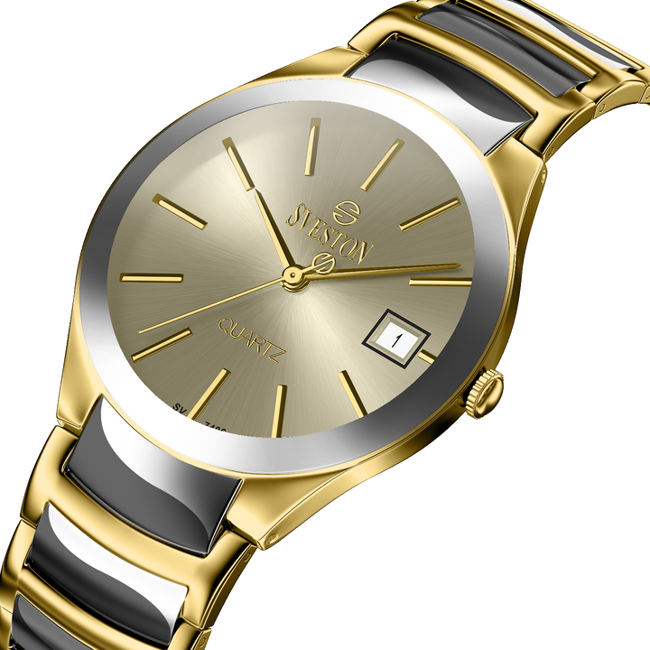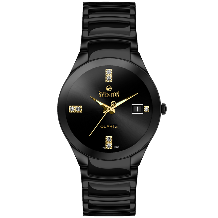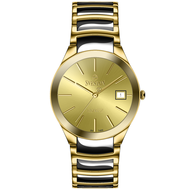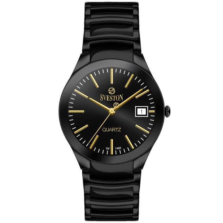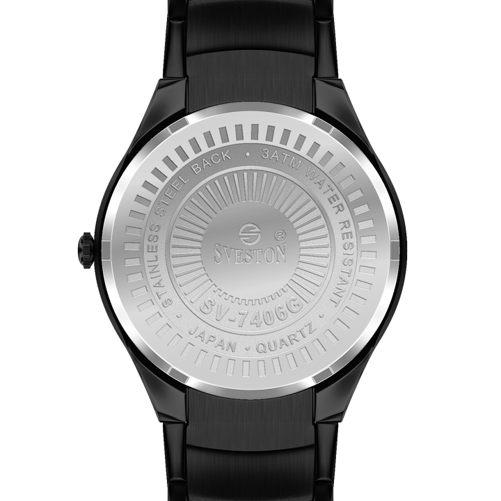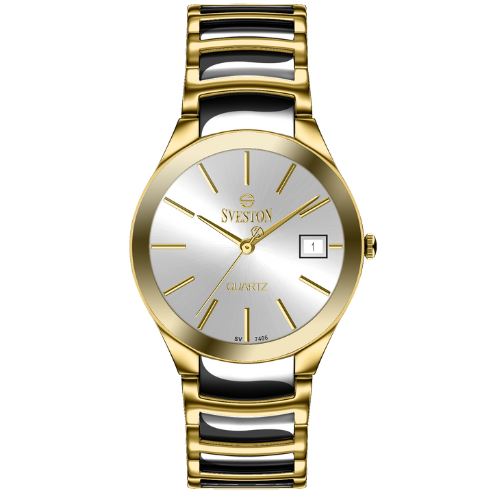Sveston Nassau analog battery powered 3 hand wrist watch, features a 24mm round case on a Link Stainless Steel with Pushbutton Deployment Clasp. Functions include hours, minutes, small seconds and date window on the right and bottom this watch comes complete with luxury box and 1 year international warranty.