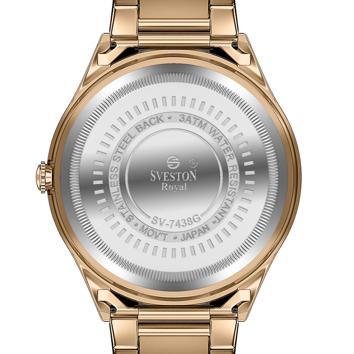 Experience luxury and precision with Sveston Royal a men's watch made with Japanese Quartz crafted from durable stainless steel it boasts a 38mm case size with a 49mm lug-to-lug distance and 3ATM water resistance weighing 128 grams this watch offers both style and substance