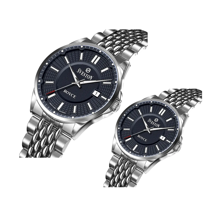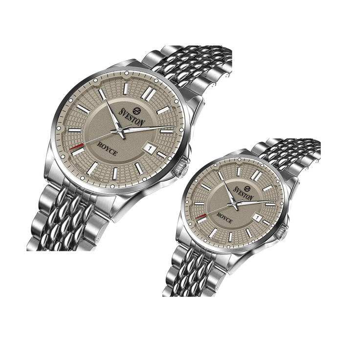 Svesto Royce Is a Couple Stainless Steel Watch Having 37mm-25mm Dial and Comes with Luxury Watch Case.