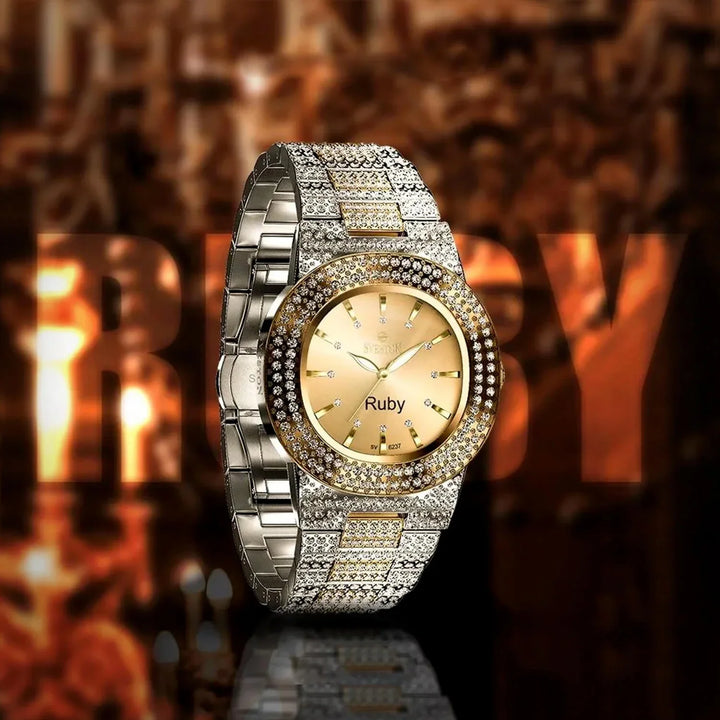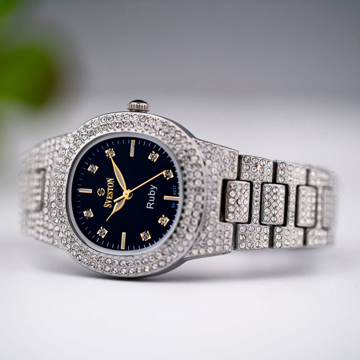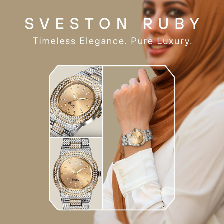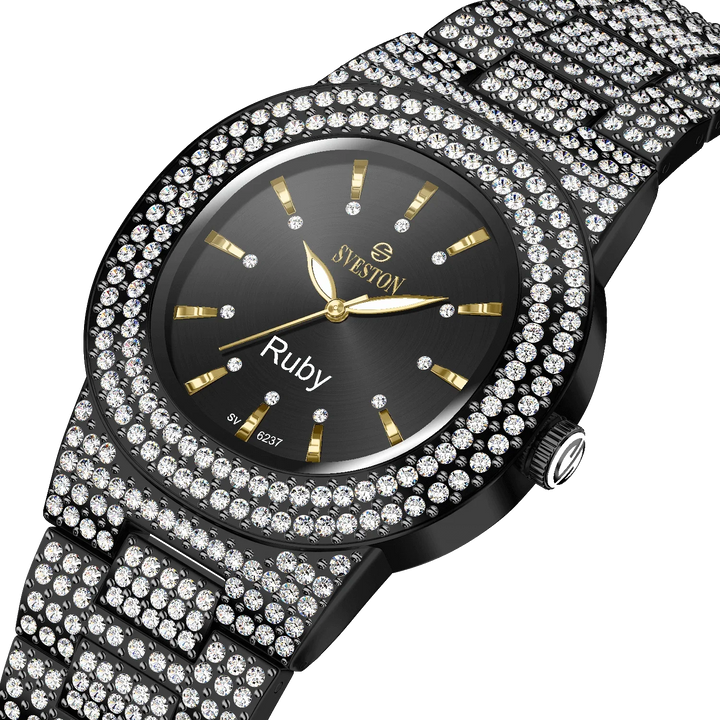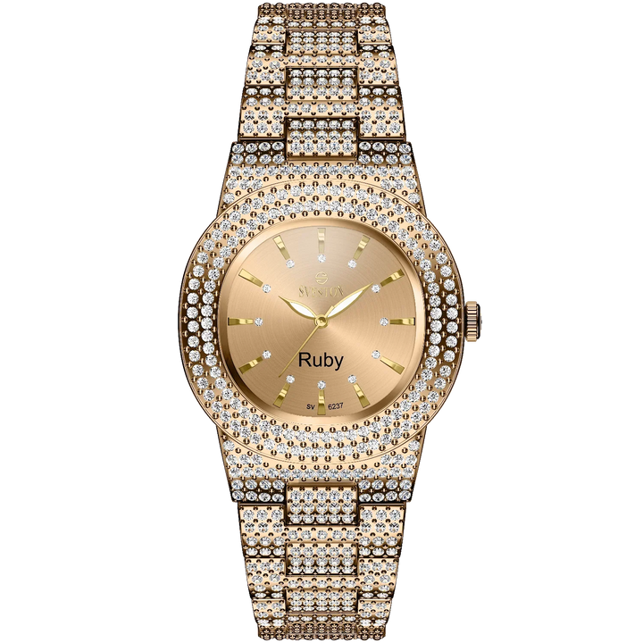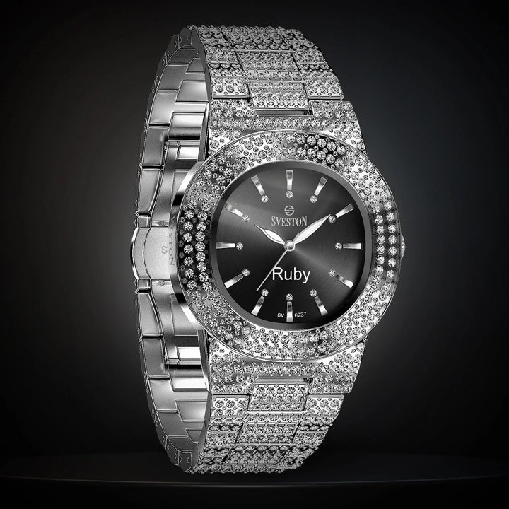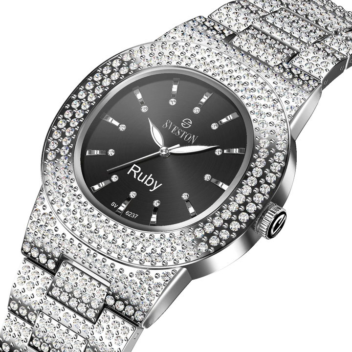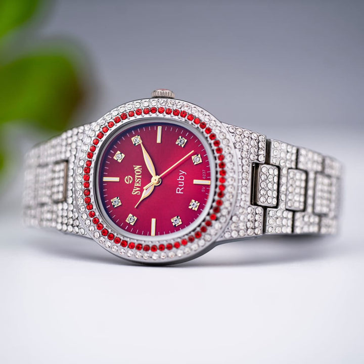 Indulge in the ultimate luxury with our Ruby watch designed exclusively for women this timepiece boasts a dazzling bracelet style with a petite 31mm case size making it perfect for a feminine touch Weighing only 95 grams and water-resistant up to 3ATM Ruby promises both comfort and practicality whether it's a special occasion or just everyday wear this watch is a must-have accessory for every fashion-forward women