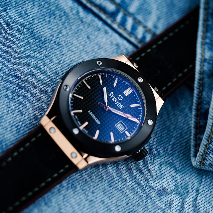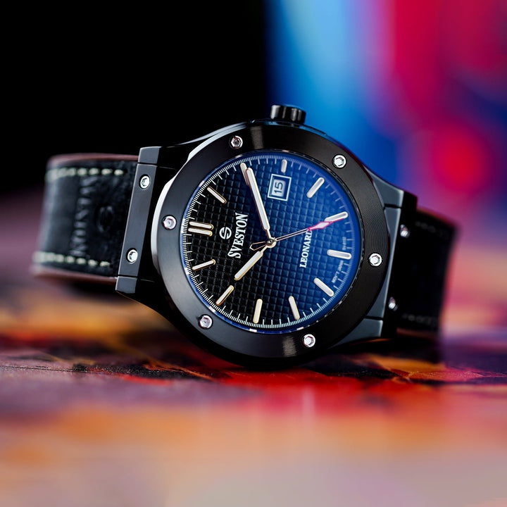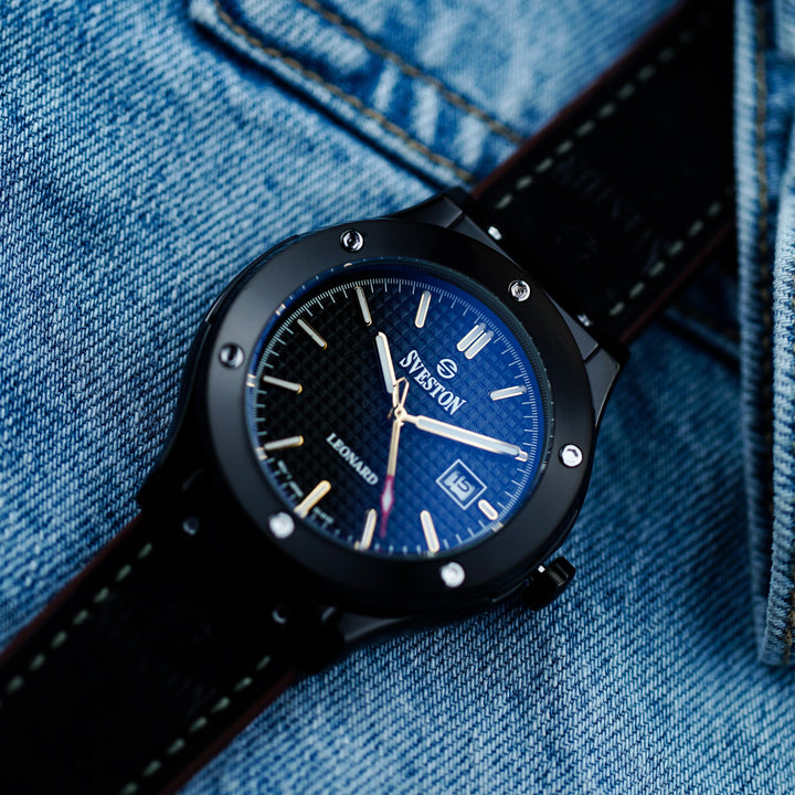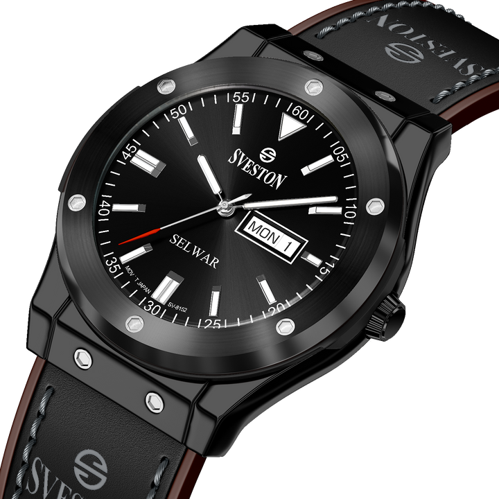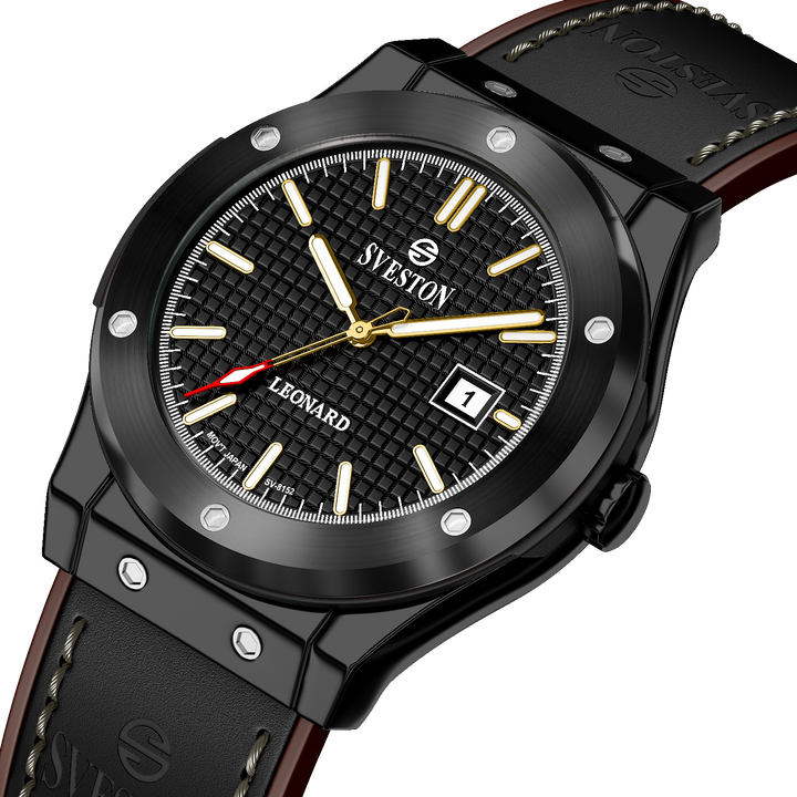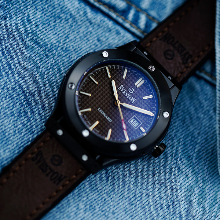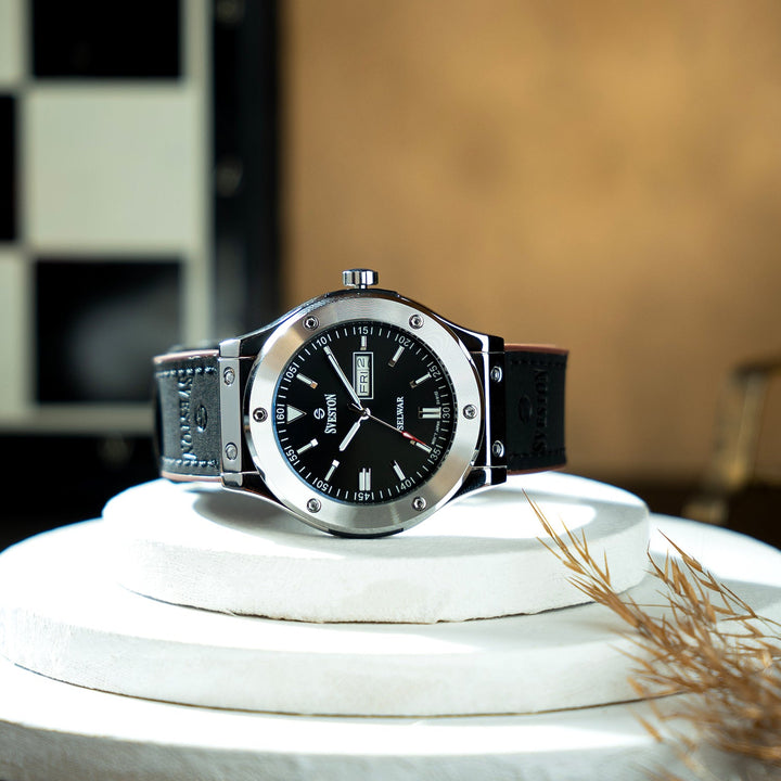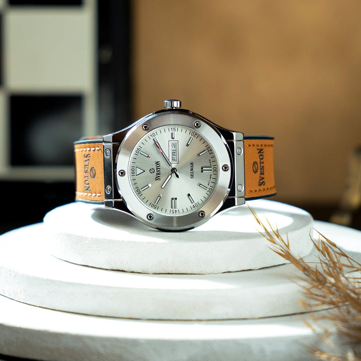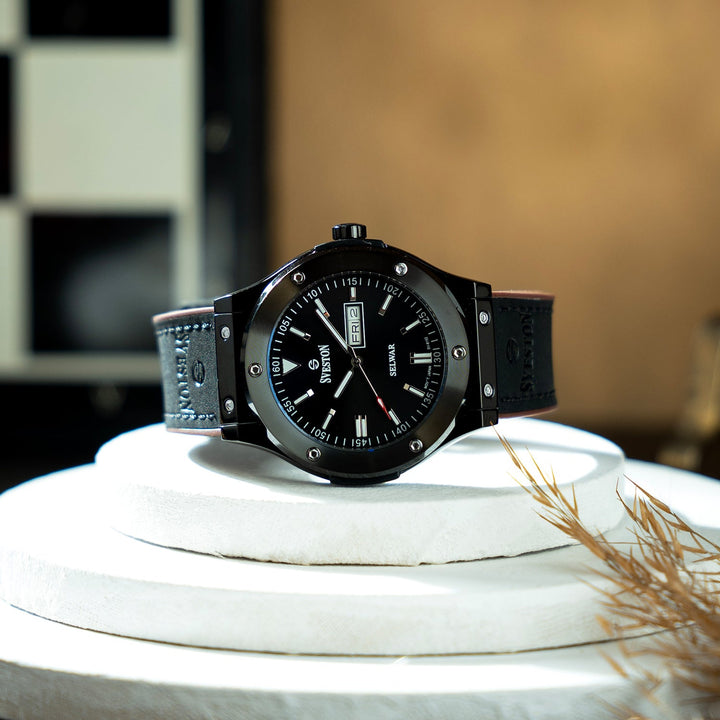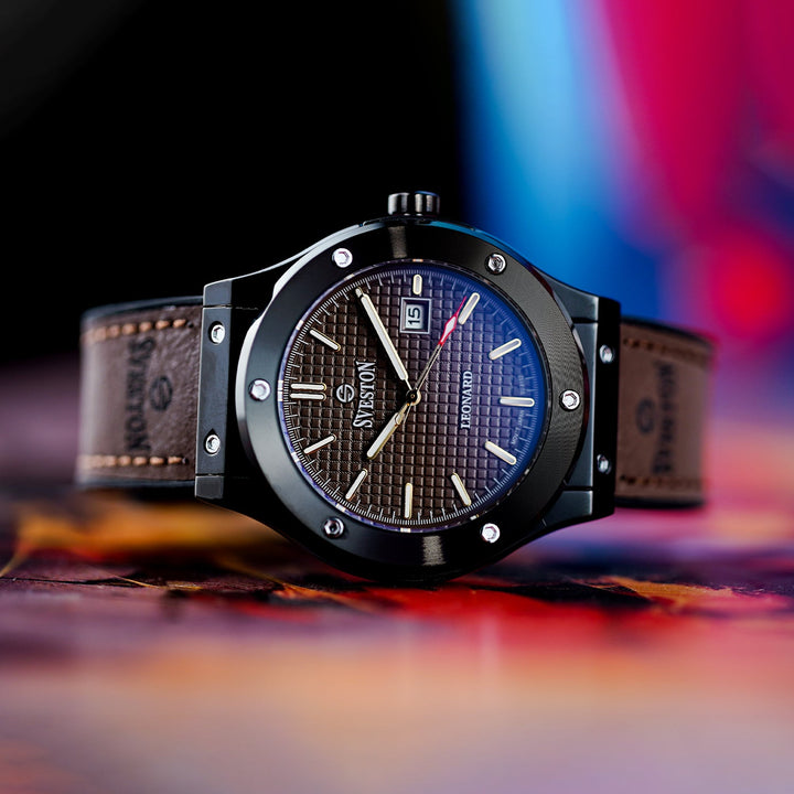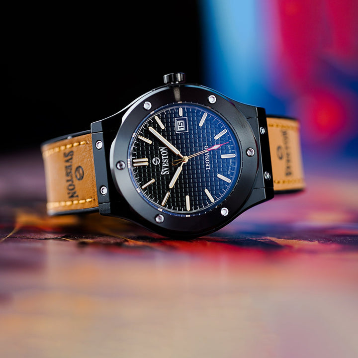 The Sveston Selwar men's leather watch features a 40mm dial complete with a luxury watch case for a premium and sophisticated touch