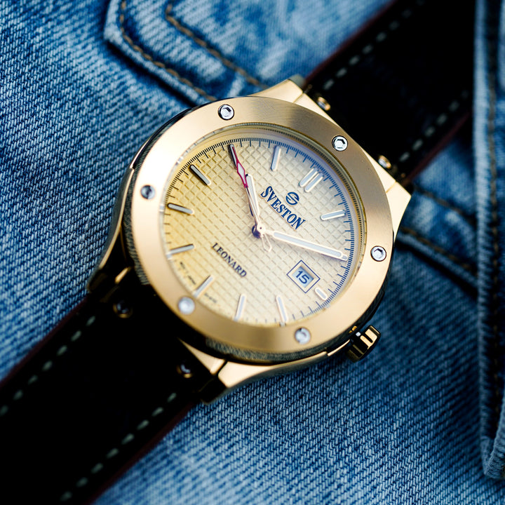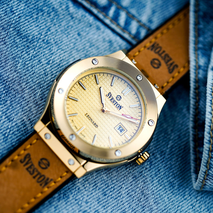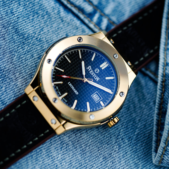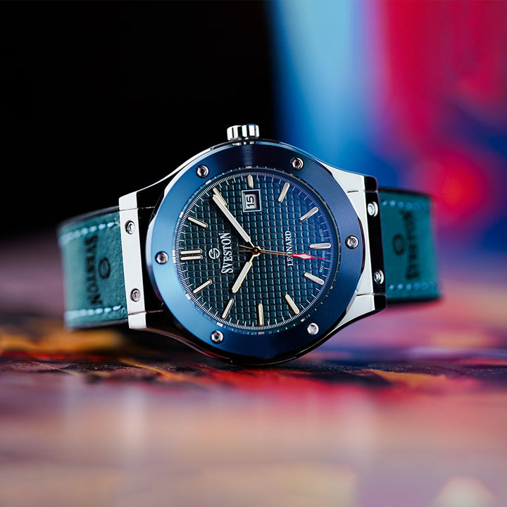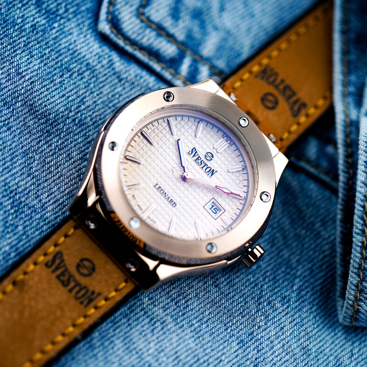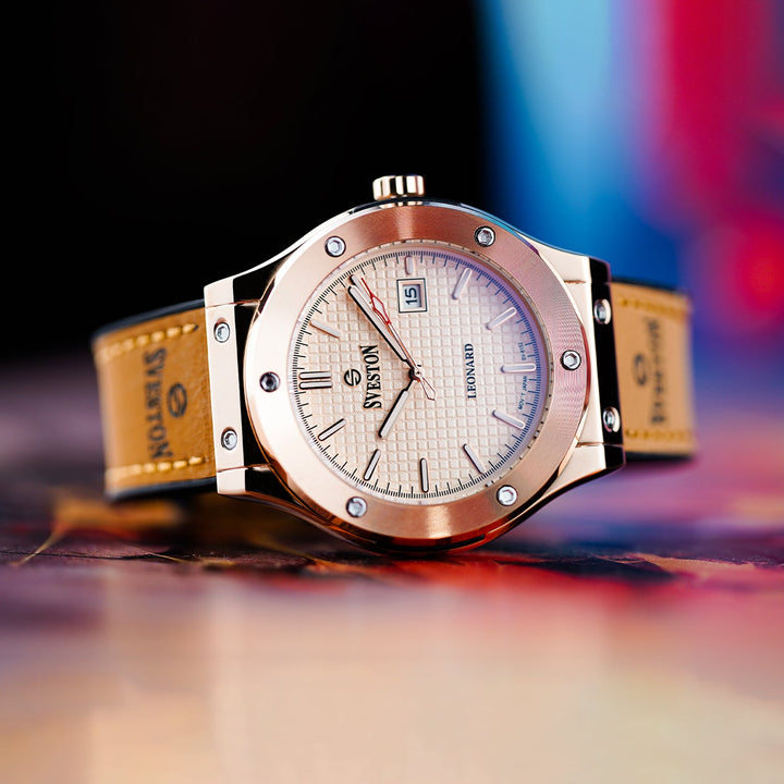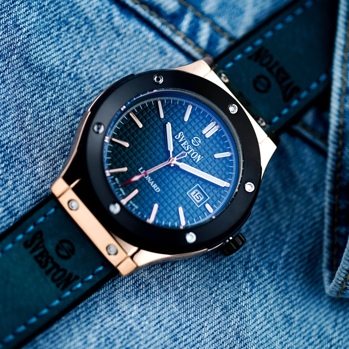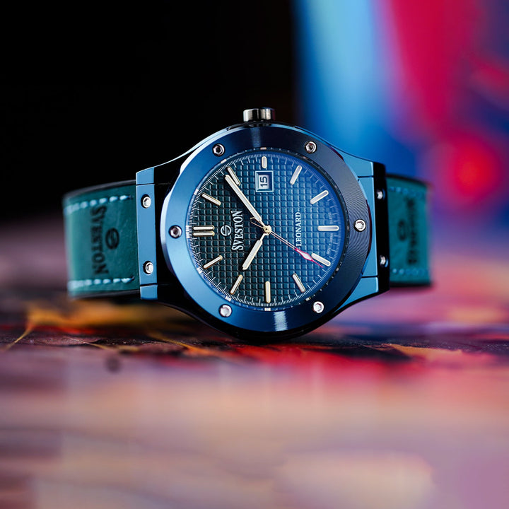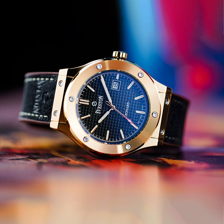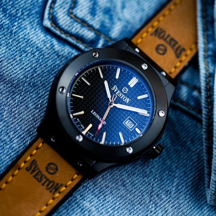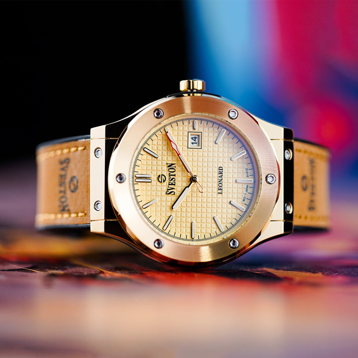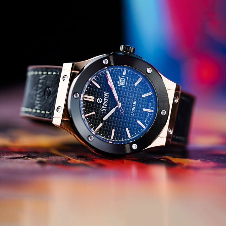 The Sveston Selwar men's leather watch features a 40mm dial complete with a luxury watch case for a premium and sophisticated touch