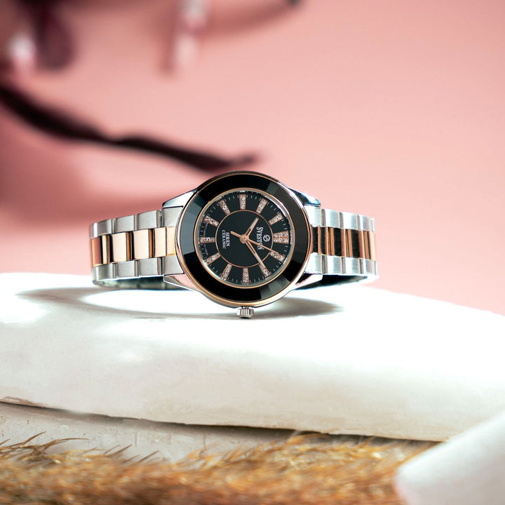 Sveston Siren is a sophisticated feminine stainless steel watch featuring a 31mm dial, complete with a luxury watch case