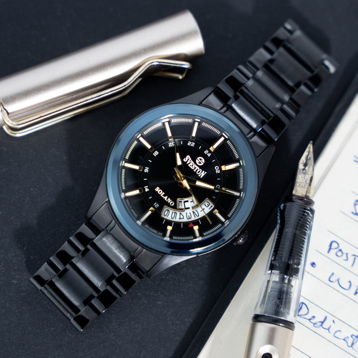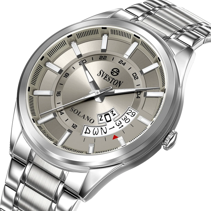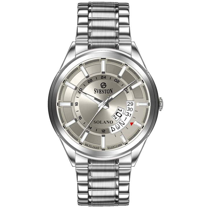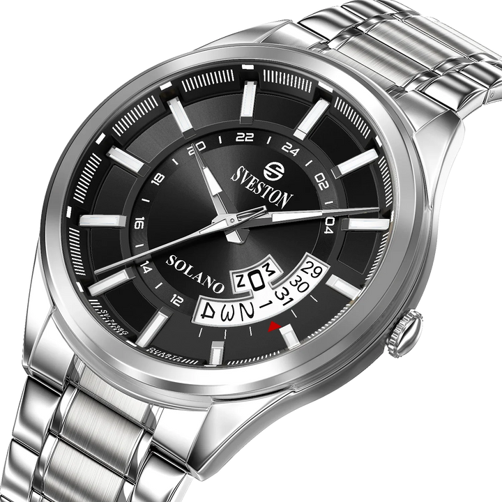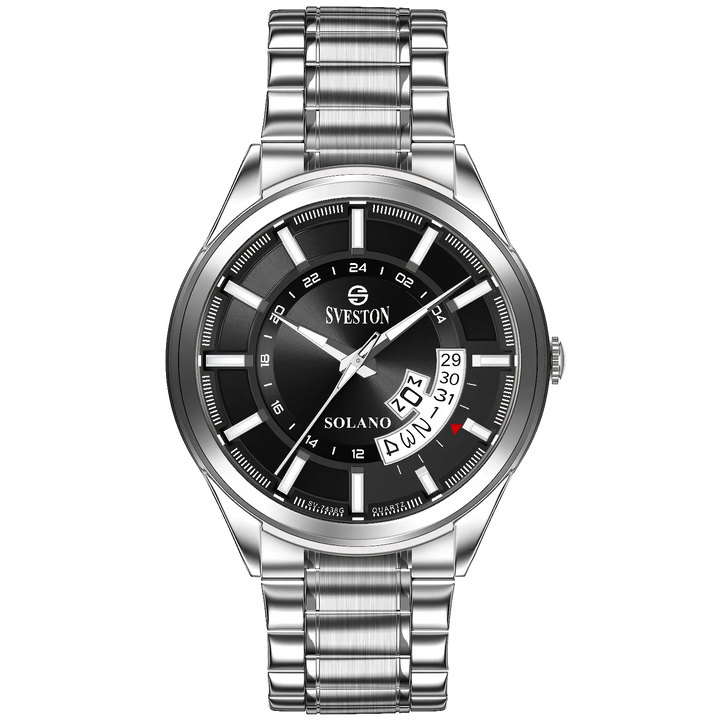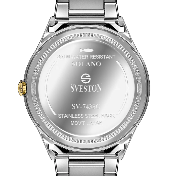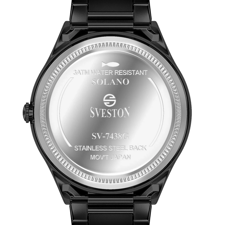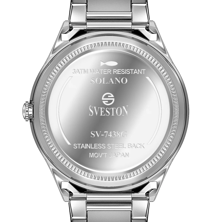 Experience luxury and precision with Sveston Solano a men's watch made with Japanese Quartz crafted from durable stainless steel it boasts a 38mm case size with a 48mm lug-to-lug distance and 3ATM water resistance weighing 137 grams this watch offers both style and substance
