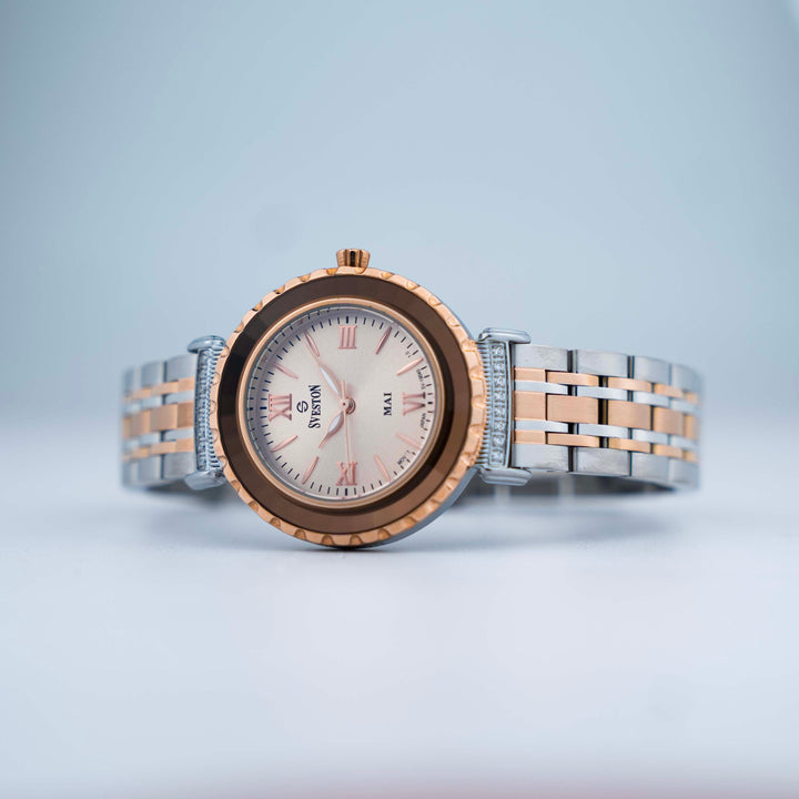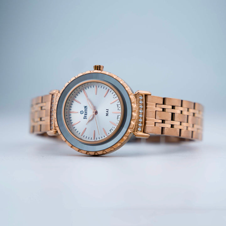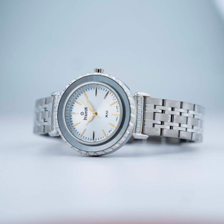 Sveston Mai is a feminine stainless steel watch featuring a 32mm dial and comes with a luxury watch case