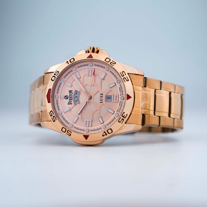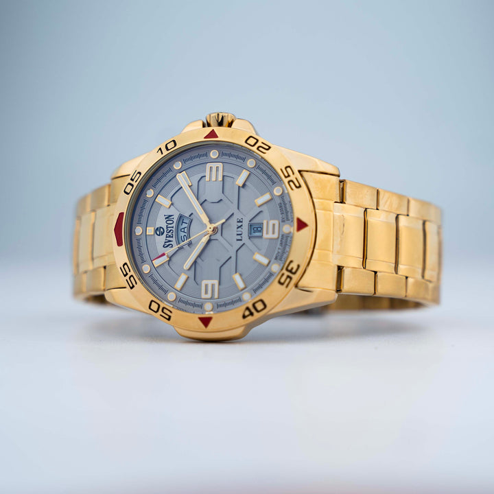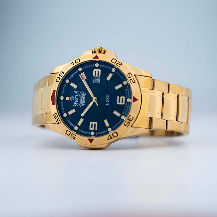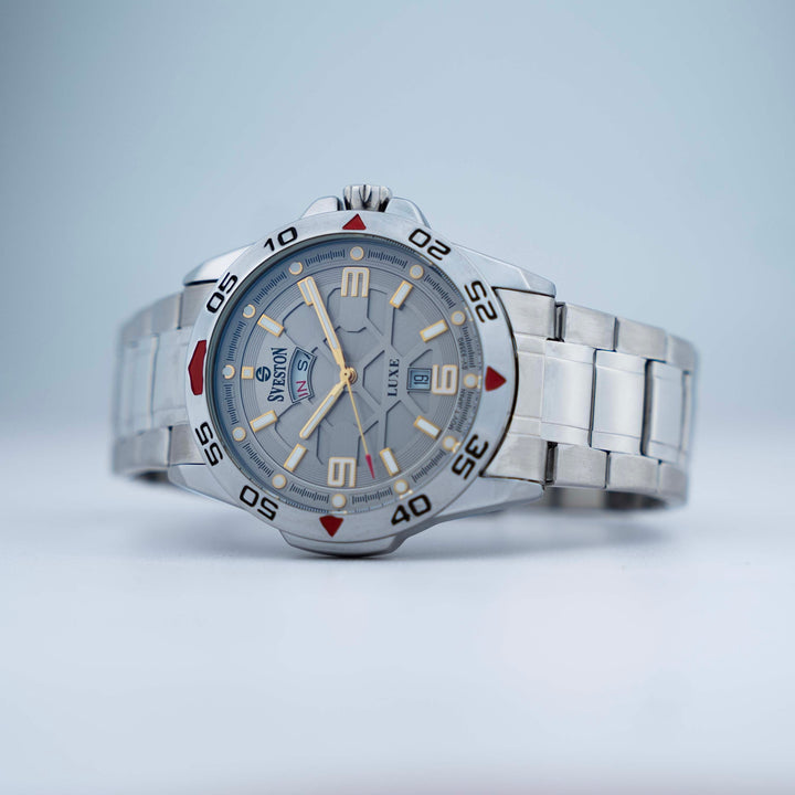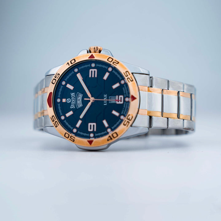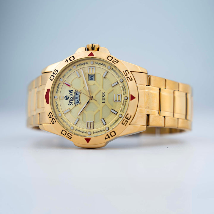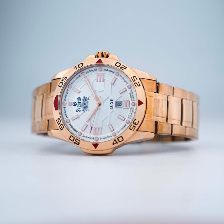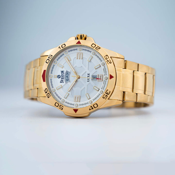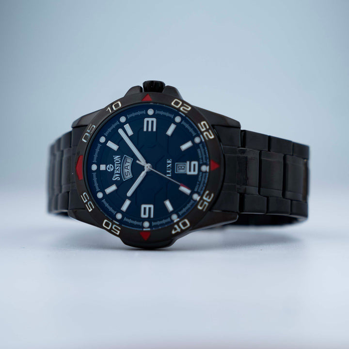 Sveston Luxe is a gents' stainless-steel watch featuring a 39mm dial and a stainless steel watch case with dual time functionality
