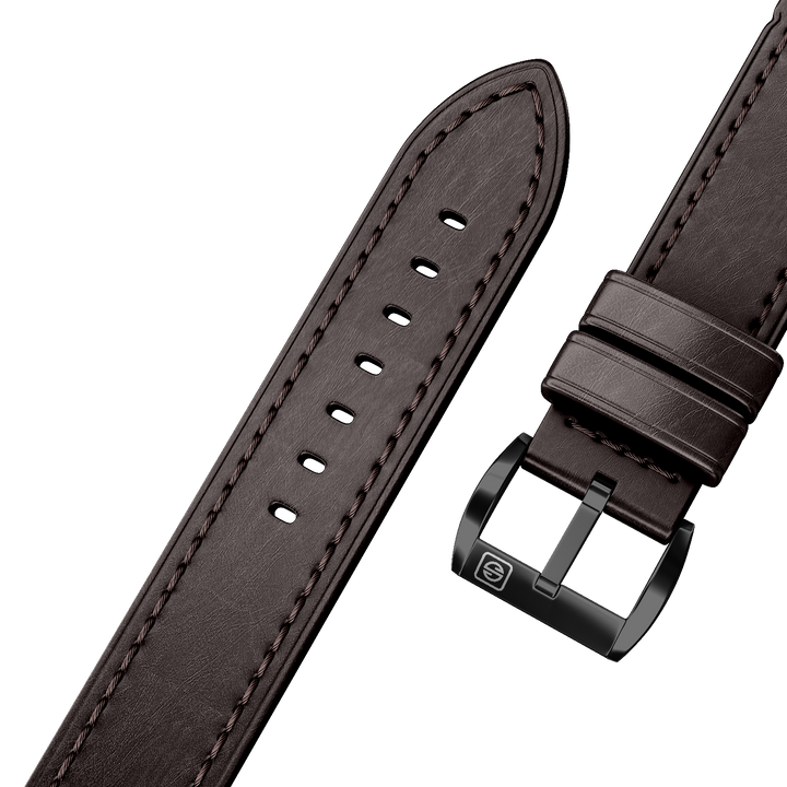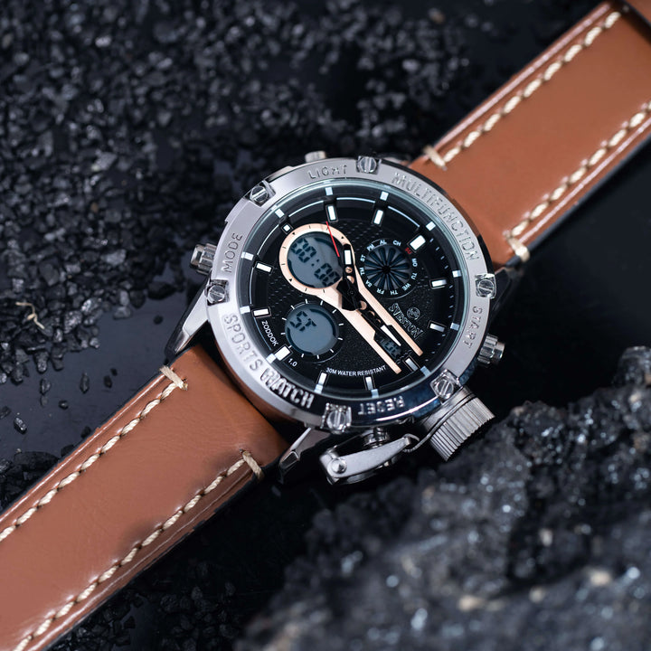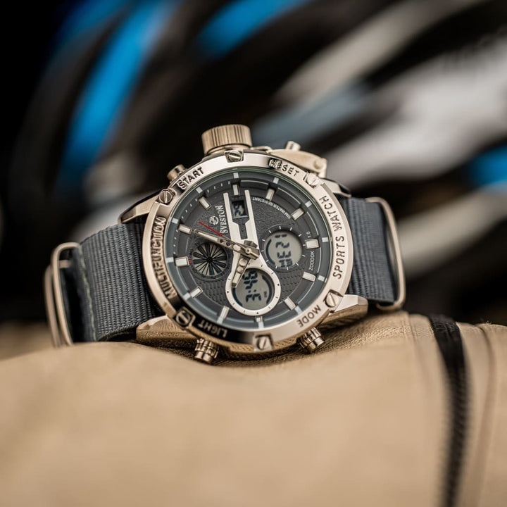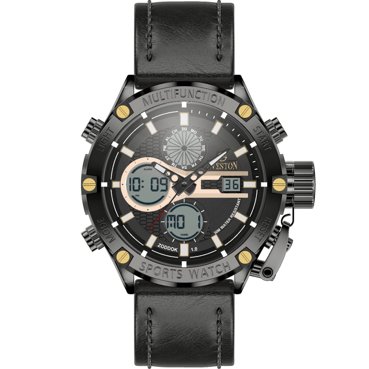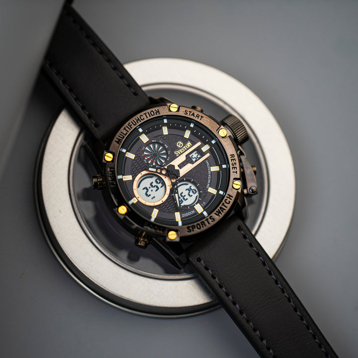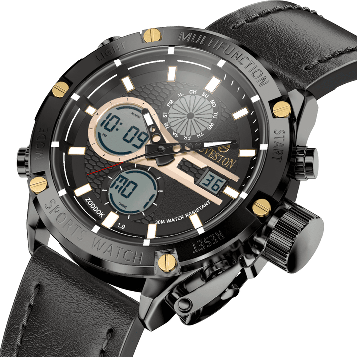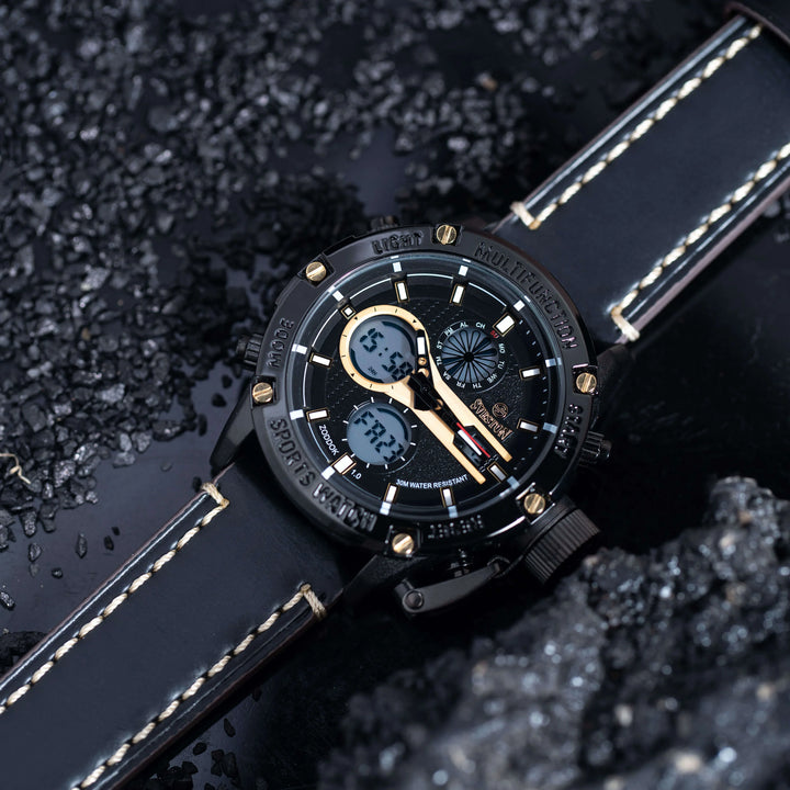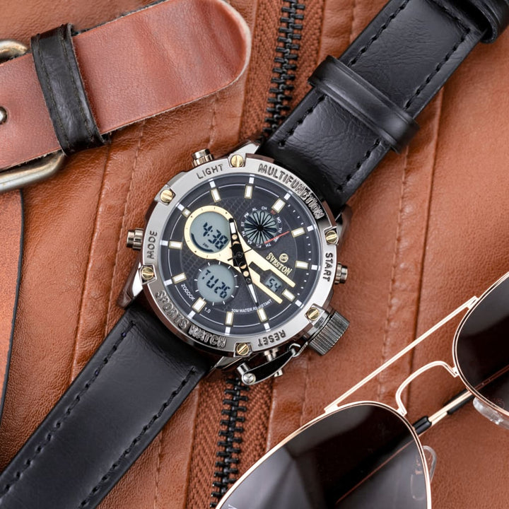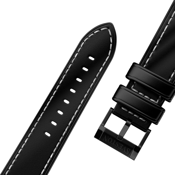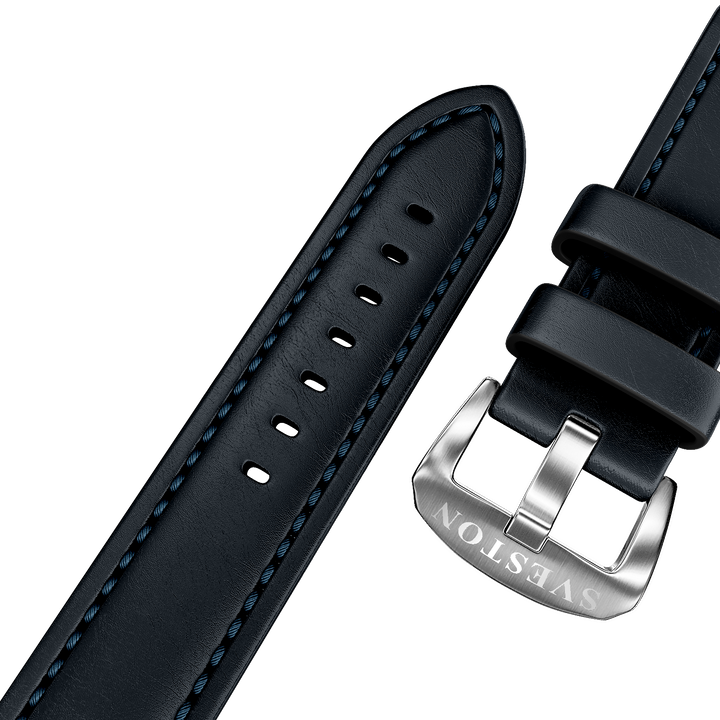 The Sveston Zoddok stands out with its oversized 44mm dial and genuine leather strap, making a powerful style statement. Comes encased in a luxury presentation box