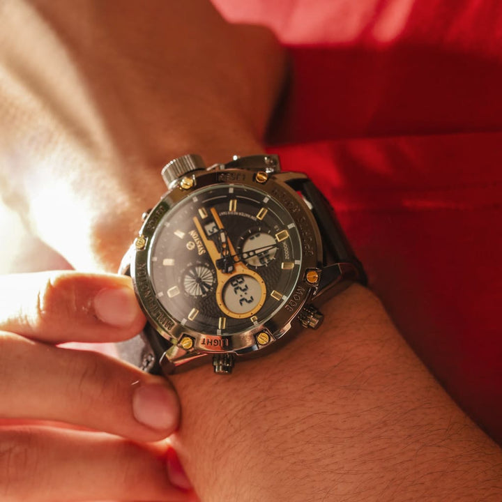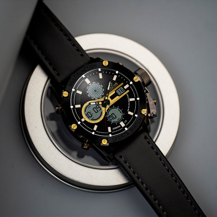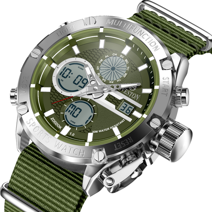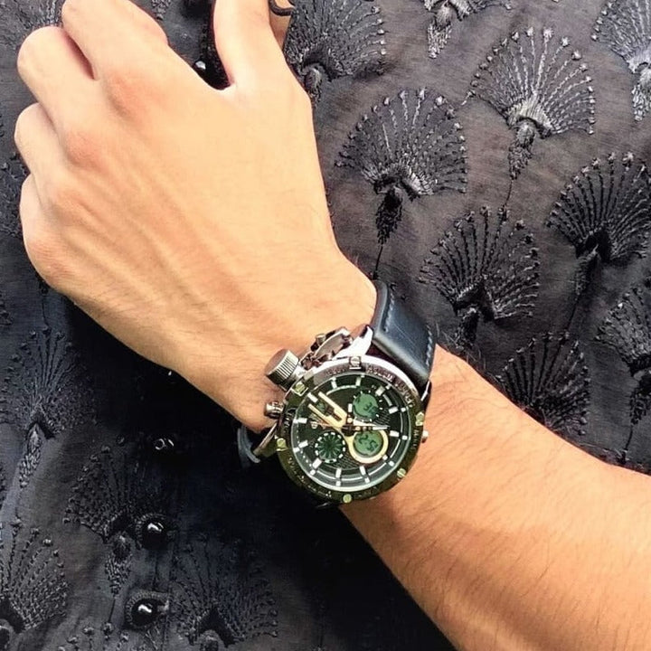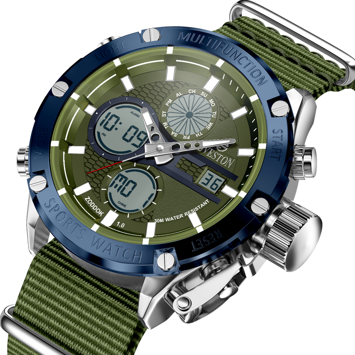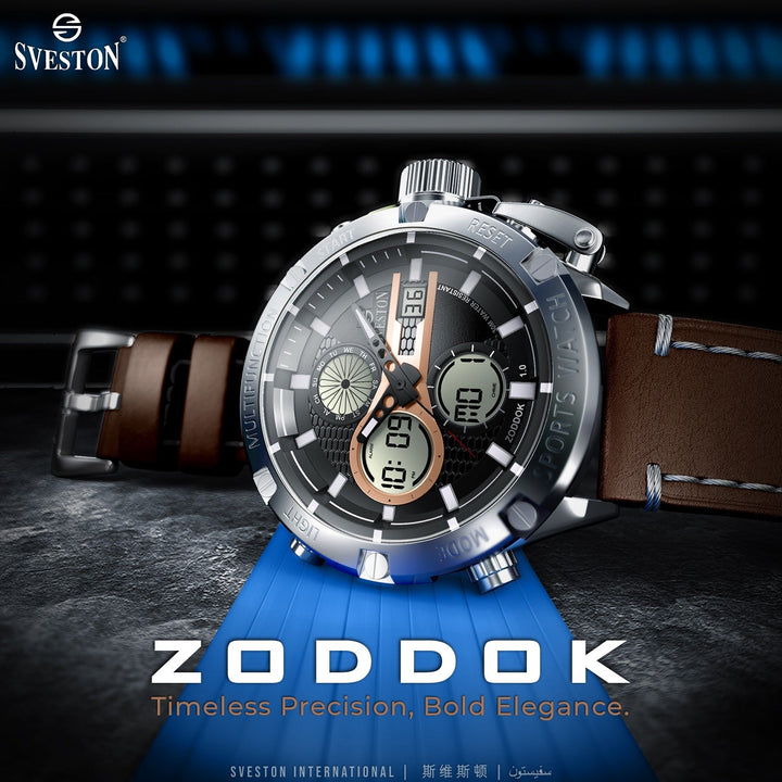 Zoddok-a men's watch made with Japanese Quartz movement. Its 44mm case size and 51mm lug-to-lug distance offer a perfect fit for any wrist, while its lightweight design at 118 grams makes it comfortable to wear all day. With 3ATM water resistance, this watch is not only stylish but functional too