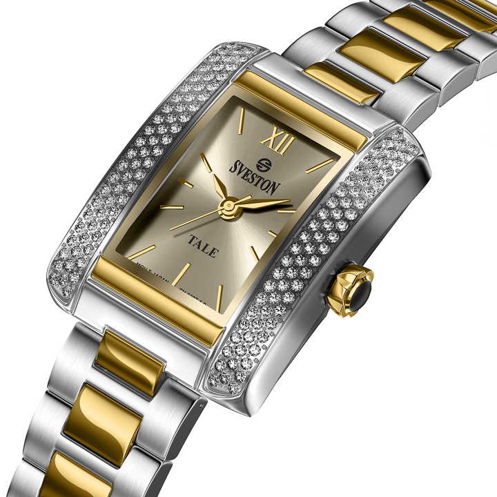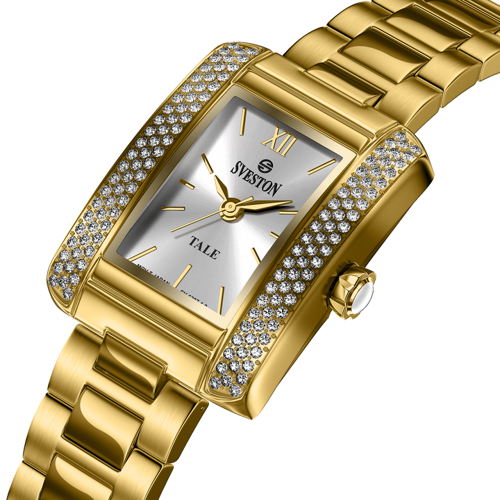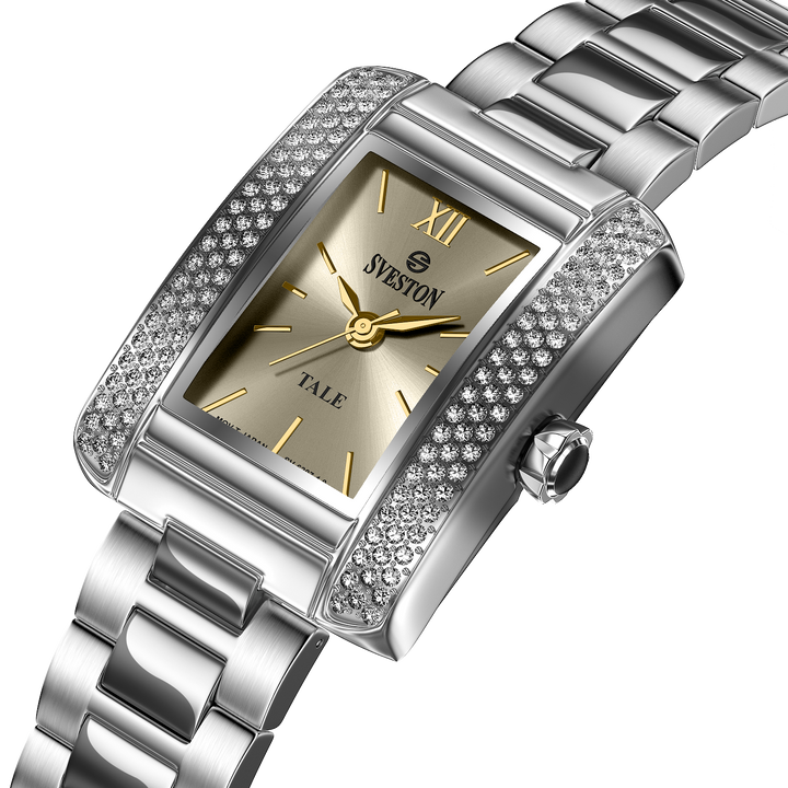 Sveston Tale 1.0 is a feminine bracelet watch featuring an 19mm dial, elegantly presented in a luxury watch case.
